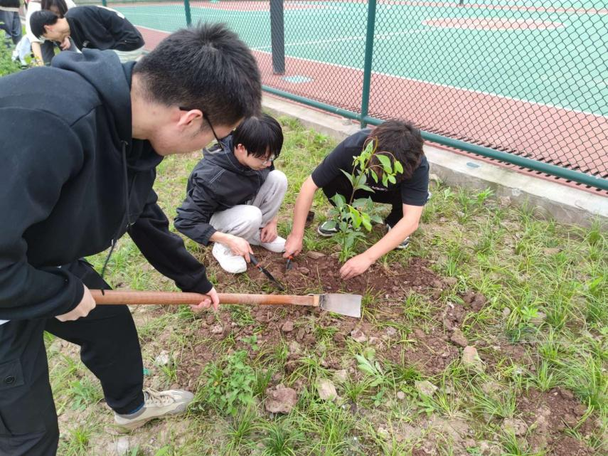 日光灿灿,草长莺飞,新芽应援春天。十年树木,百年树人,为了给校园添一抹新绿,融入学生一片深情,3月22日大数据数科2异科导师班以三月份植树节为契机与信息安全学院、基建后勤处等单位联动,开展“志愿添绿护家园”义务植树实践体验活动,大家成为綦江校区第一批学生植树队伍的一员。