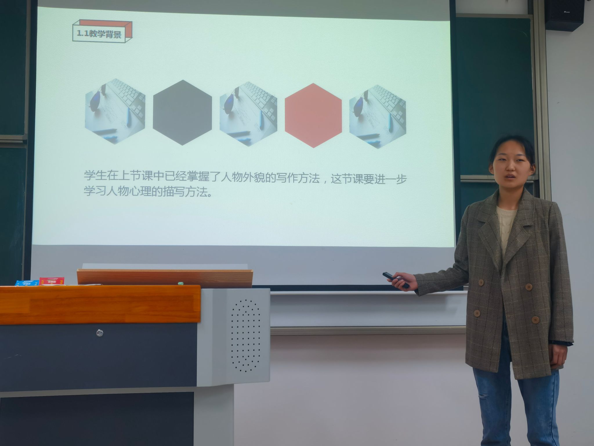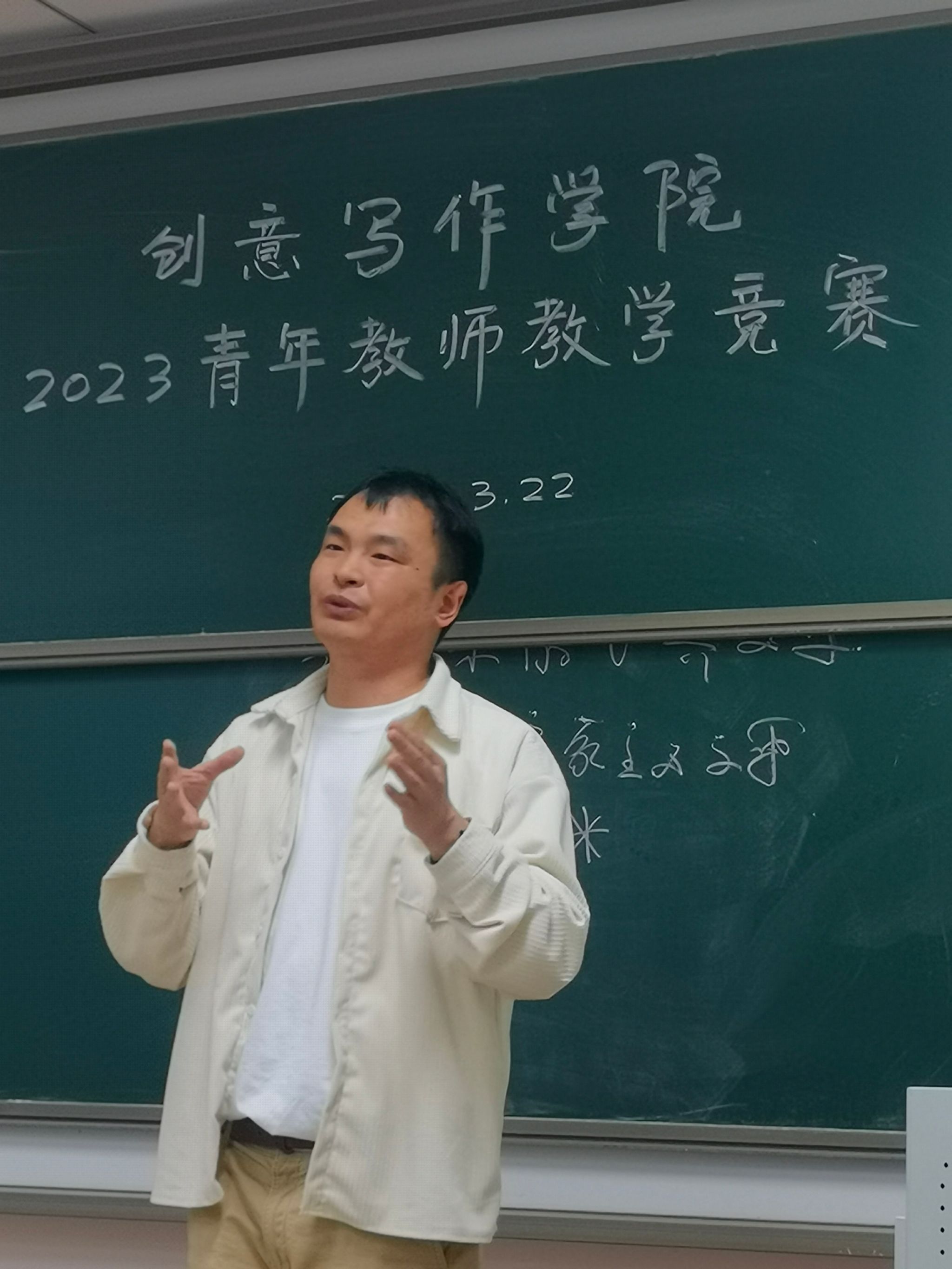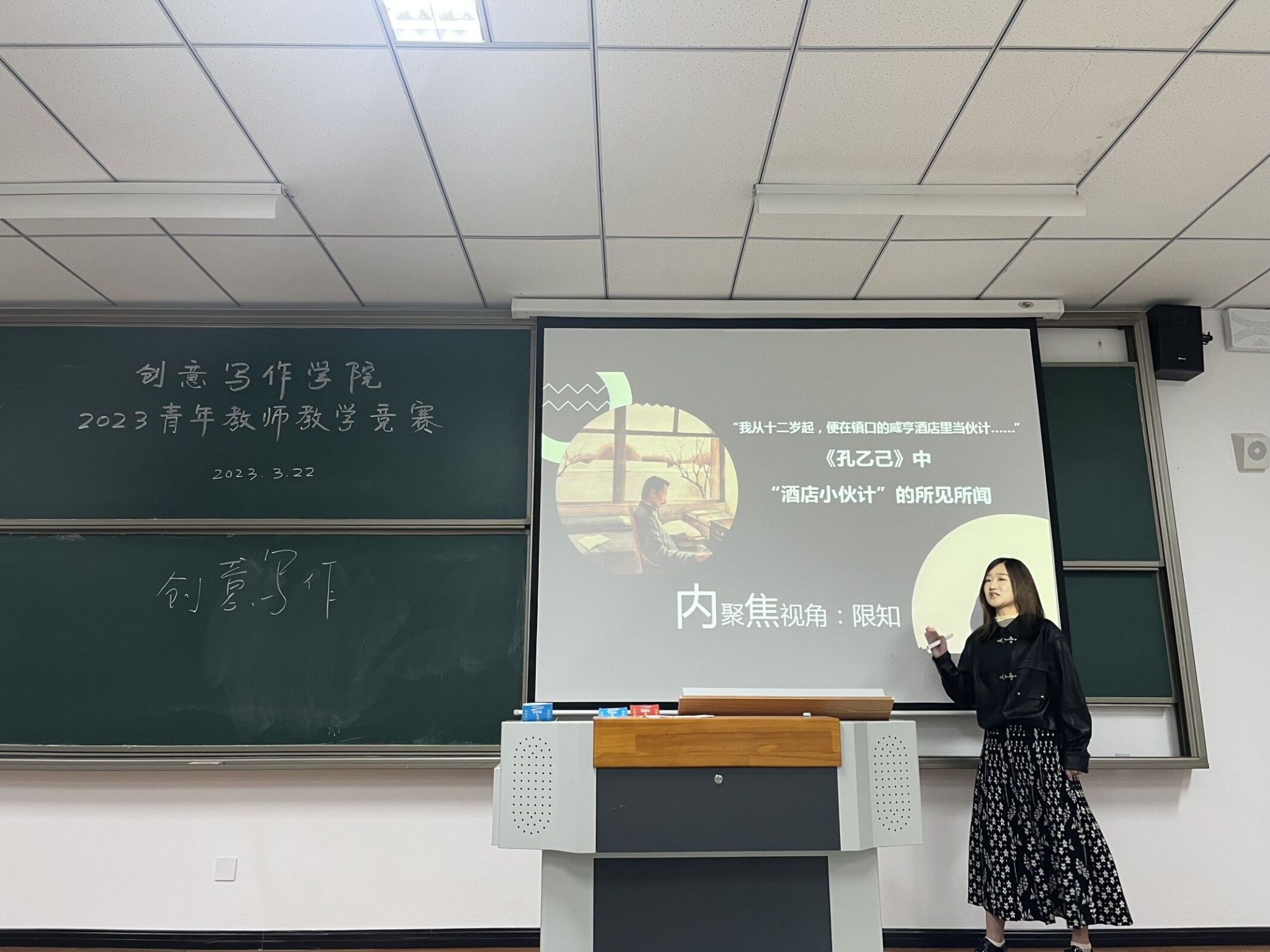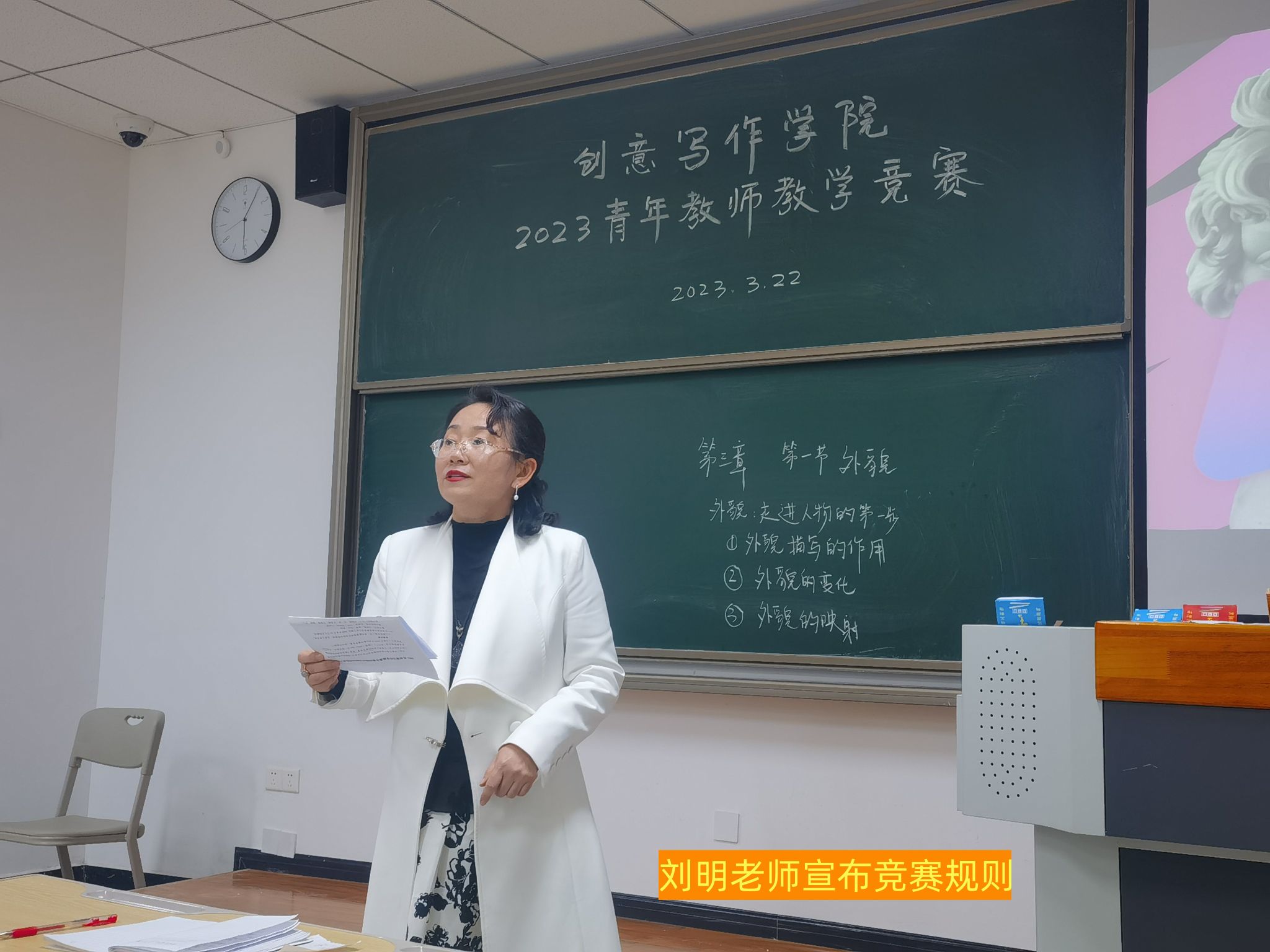 为进一步夯实创意写作学院青年教师教学基本功,提升教学能力和业务水平,激发教学的积极性和创造力,为即将到来的移通学院青年教师教学竞赛选拔参赛代表,綦江校区创意写作学院于3月22日下午在仁者楼312教室举办了青年教师教学竞赛选拔活动,本次比赛共有4名青年教师参赛,他们分别从人物外貌、人称视角、人物心理和18世纪启蒙主义文学展开了精彩的竞技讲解,刘聪慧老师获得第一名。