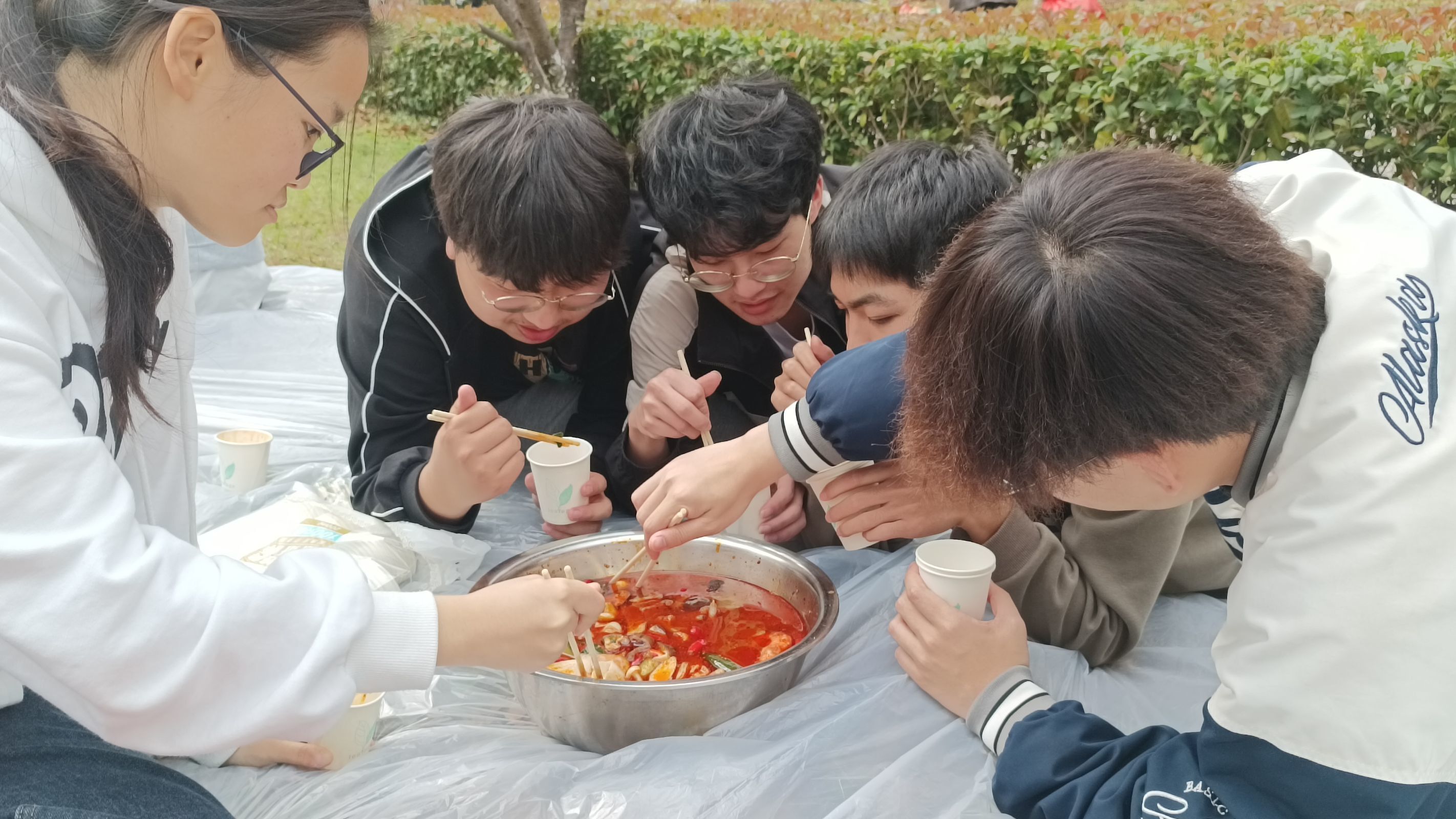 绿草是春天的象征,绿意盎然使人心情豁达,此行的第一件事便是拥抱盛开的鲜花和遍地的绿草。随着一张张白色野餐布的铺开,也代表着赏花之行的正式开始。拿出、撕开、撑起,一气呵成,在大家的默契配合下,现场布置工作也能轻易拿捏。完成布置不易,张老师也为大家准备了一点小惊喜,深受大家喜爱。