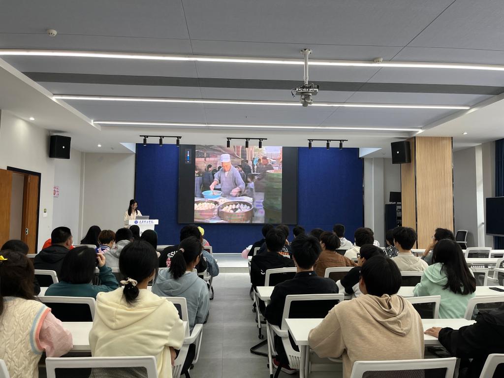 付老师“讲”的环节结束以后,主持人蒋丹给同学们播放电视剧《四世同堂》的片段,更加直观地展现了老北平胡同的生活状况和不同人物之间的矛盾关系,同学们投入且专注地观看了视频。