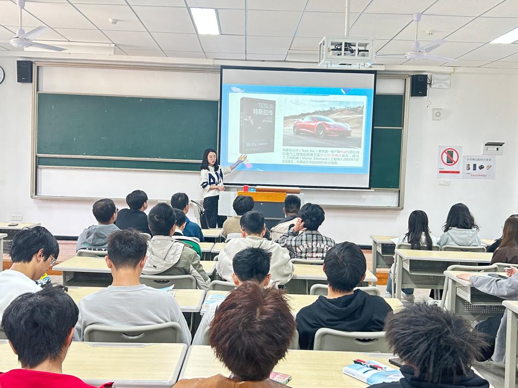视频观看结束后,郝晓丽老师通过图书目录、内容简介以及阅读有感这三个部分,向同学们介绍了《特斯拉传--现代的发明者》这本经典的名人传记。特别是在“阅读有感”这个部分,郝老师结合同学们的专业,与大家分享了自己读完整本书之后的感受。她谈到:第一,理科天才其实在文学方面也是很有天赋的。第二,对于某一项热爱的事物,当我们遇到瓶颈之际,最重要的就是学习如何去解开迷惑,走出死胡同。第三,生活中的压力影响着我们每一个人,特斯拉如此强大的自制力不得不令我们震惊,也值得我们学习。