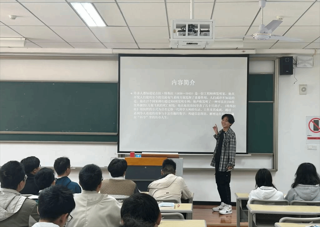 首先,简云丹老师带领同学们了解了伟大而孤独的天才发明者,尼古拉·特斯拉的一生事迹。简老师提到,特斯拉一生跌宕起伏,被当代的钦佩者视为“创造出二十世纪的人”,也是世人眼中古怪天才。他的特别之处在于他对自己所做事业的那一份热爱,或者说是痴狂,以至于他一生未婚。特斯拉打赢了“电流之战”,但去世时却身无分文。他的创造力和勤勉奋斗的精神,依然继续激励着现代的创新者。此外,为了更加深入地了解这位科学巨匠,简老师通过播放视频的方式,让同学们观看了特斯拉的一生。