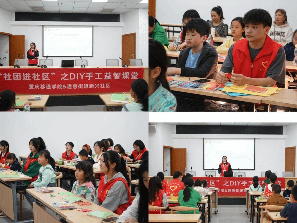 3月19日下午15:00, 重庆移通学院DIY手工协会以“益智手工课堂”携手新兴社区以“社团+志愿”的方式率先开启綦江校区首个“社团进社区”主题活动。