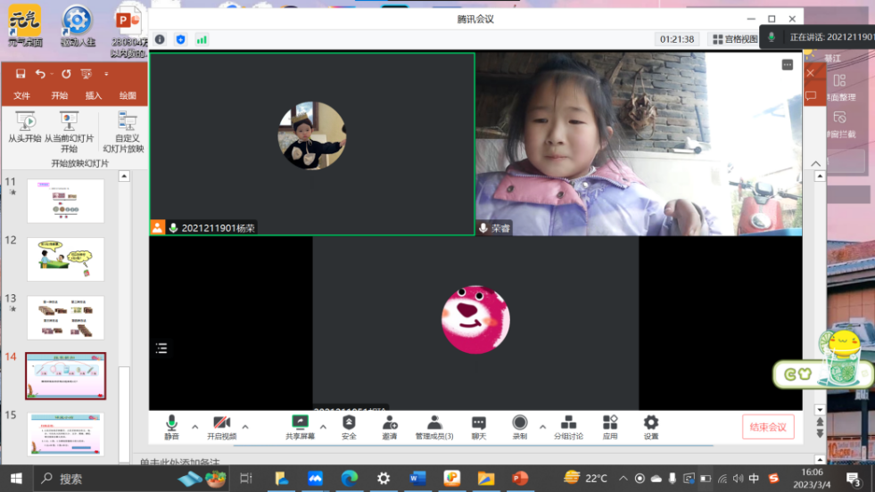 近期,有这样一批青年志愿者,他们从学生转化为“老师”,既没有来到学生中间,也没有穿梭在校园之间,而是依靠屏幕,透过线上平台,为服务对象带去志愿服务。大数据与计算机科学学院青年志愿者协会携手綦江区彩虹志愿服务队,共同开展2023年春季“青携彩虹,伴你成长”线上周末公益课堂活动,用陪伴为留守儿童带去温暖。