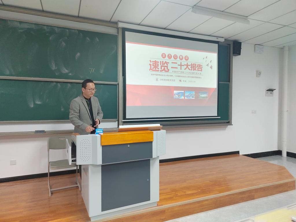 会后,书记范保珠同志带领全体党员对二十大报告和党章进行集中学习、研讨交流。紧紧围绕深入学习贯彻党的二十大精神,学习关于党的二十大主题、主要成果等七大方面内容,深刻领悟“两个确立”、“六个必须坚持”等重要精神。范书记强调,与高校新时代教师关系最为密切的属于科教人才方面,工作生活中应时刻贯彻教育是国之大计、党之大计的发展思想。