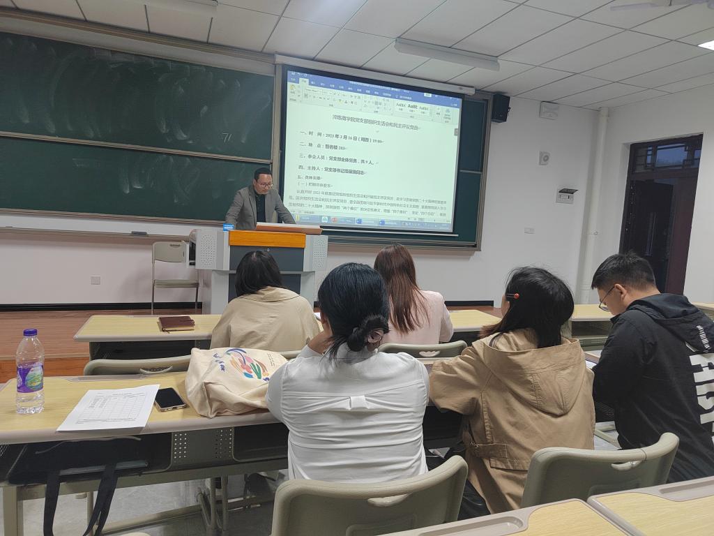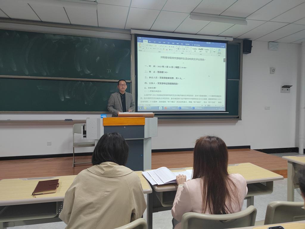 为深入学习贯彻党的二十大精神,坚持不懈用习近平新时代中国特色社会主义思想凝心铸魂,按照学校党委组织部要求,淬炼商学院党支部于3月16日晚上19点在智者楼203教室顺利召开2022年度组织生活会暨民主评议党员大会。淬炼商学院党支部全体党员参会,党支部书记范保珠同志主持。会议内容主要包括党的二十大学习研讨交流、支部书记总结去年工作情况、批评与自我批评、民主评议党员共四项议程。