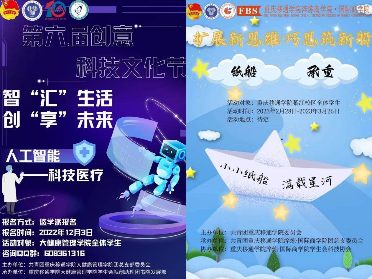 发散头脑,创想生活趣味。“随心所欲·信手‘粘’来”——粘土大赛,捏塑脑海所想,激发创新的热情;“‘綦’思妙想·变废为宝”——环保服装设计大赛,融合环境保护及时尚理念,独出心裁,引人入胜;“集百家之长,荟灵思之萃”百科知识竞赛,让知识走出课堂,让科学走进生活,让科技走入校园 ......更多活动,等你到来,愿你创意出彩。
