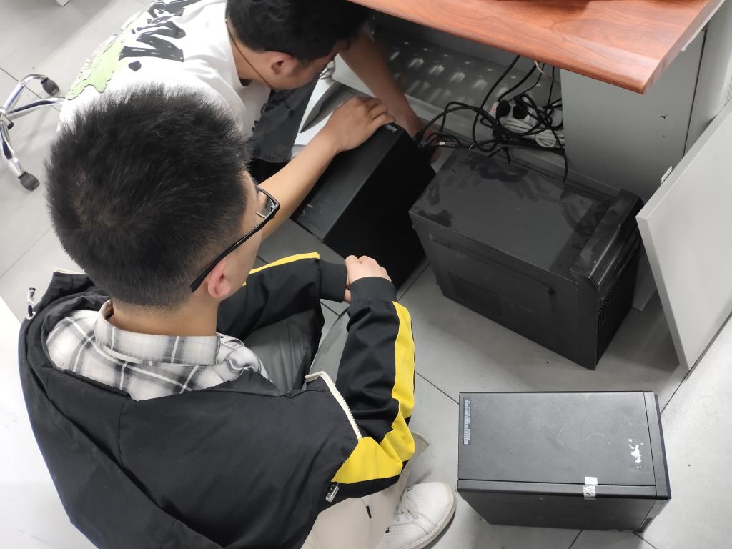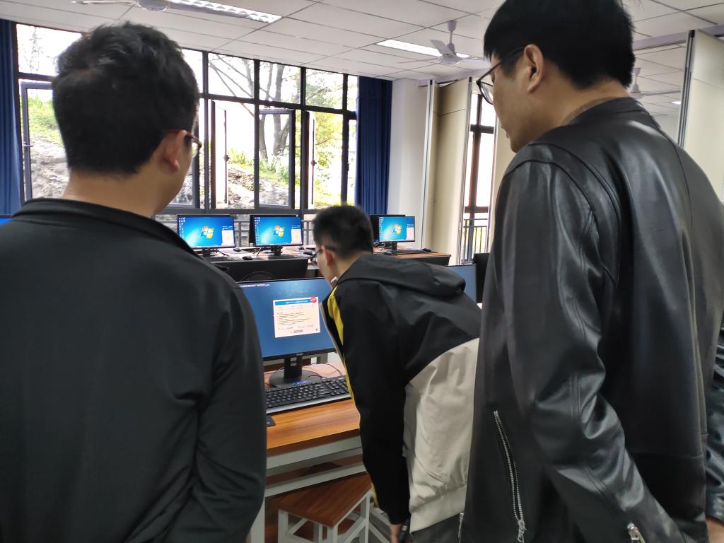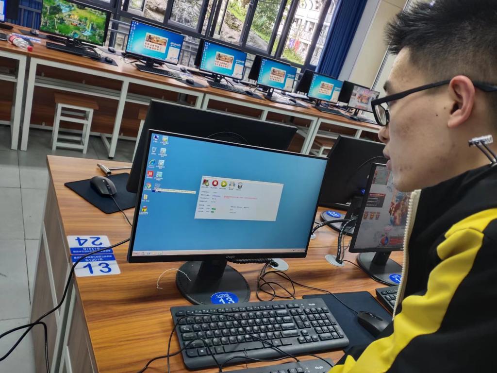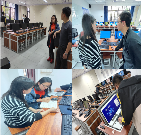 根据本次学生报名人数,此次考点一共设置四个考场,为确保考试环境的正常稳定运转,两校区实训中心的老师对实验室机房的现有环境进行了交流讨论,提出服务器安装方案,软件更新发布,在确保服务器能够正确运行之后,分别对每个考场进行了模拟题库的分发、作答、测试等工作。