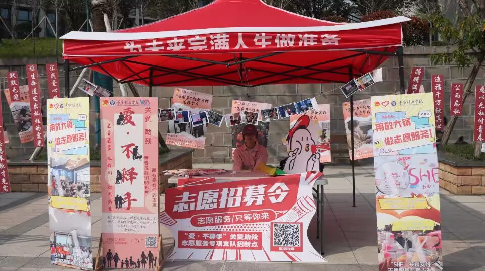 为了激发同学们对志愿服务的热情,本次活动除了爱心基金募捐仪式之外。现场还有“青鸽”赛会志愿服务专项支队等多支支队开展招新活动。自2015年起,重庆移通学院成立各志愿服务专项支队,开展各类志愿服务活动。截至目前,綦江校区共成立25个志愿服务专项支队。在招新现场,还有各类志愿服务专项支队自成立以来的成果展示,并且现场志愿者热情带领同学们深入了解志愿服务内容,一起感受新时代的志愿服务精神。成为一名志愿者,将爱心化为行动,去关爱社会上需要帮助的人,以奉献弘扬青春,与社会共同进步。