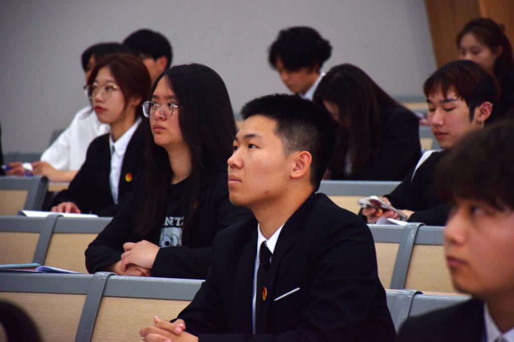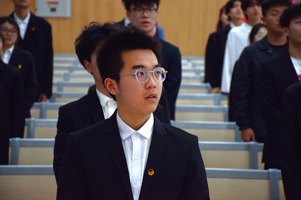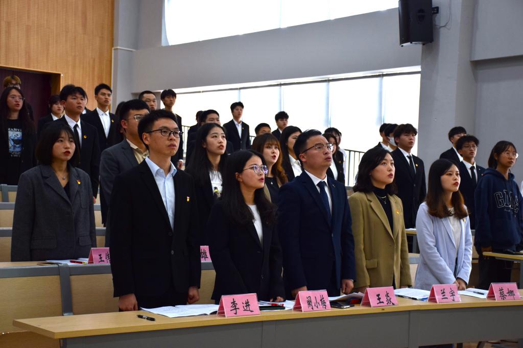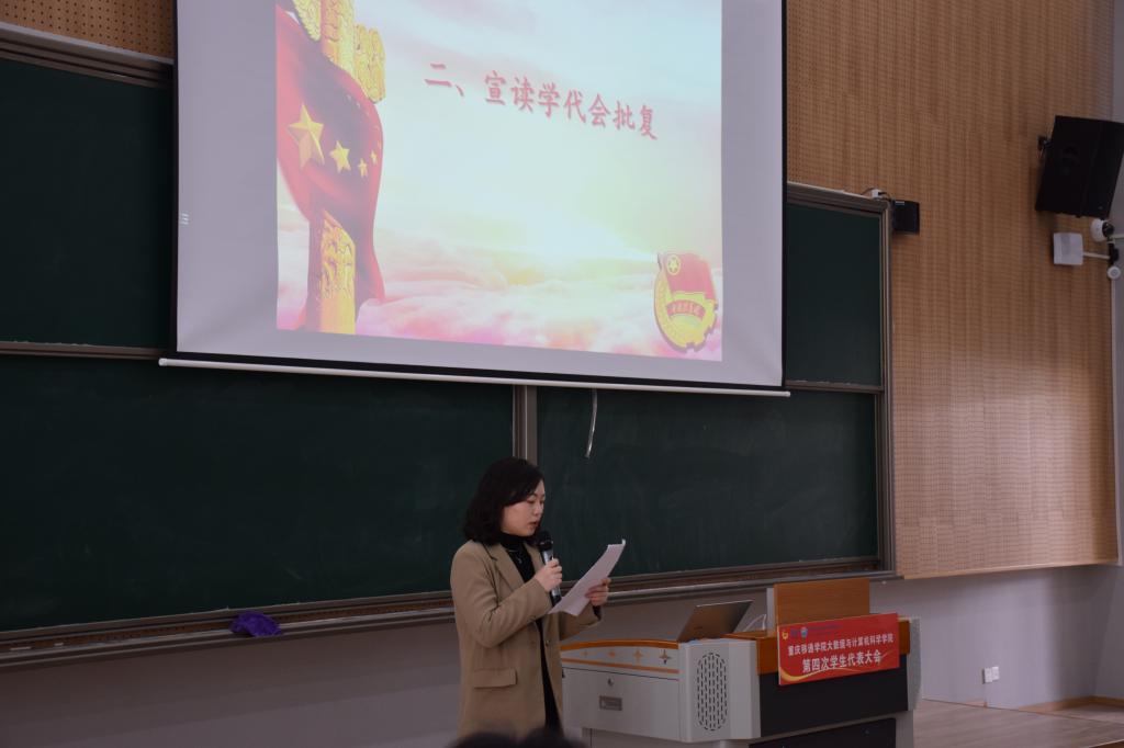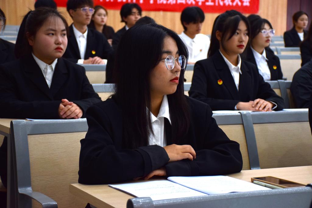 会议伊始,全体参会人员整齐佩戴党员徽章或团徽,统一着装,陆续抵达会场,按会议要求有序就座。主持人宣布大会议程后,全体起立,此次大会也在庄严宏亮的国歌《义勇军进行曲》中拉开帷幕。紧随着,团总支书记兰宇老师宣读了第四次学生代表大会的批复。