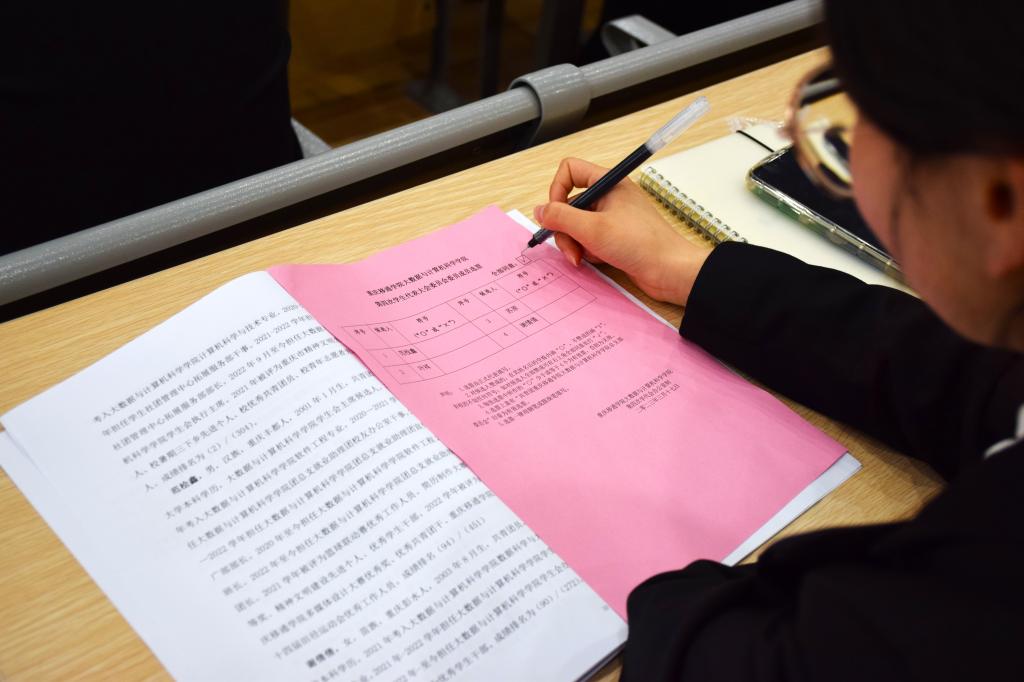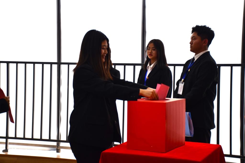 与会代表认真听取了陈浠同学所作的报告,报告也在在全场热烈持久的鼓掌声中结束。紧接着,大会进行了第四届学生委员会委员成员选举工作。本次选举秉持公平公正公开的原则,采用不记名投票方式产生选举结果,学生代表们结合实际情况,仔细思考,认真斟酌,纷纷选出了学生们信任的委员代表,并将神圣的选票投进票箱。在等待计票人计票期间,由大数据与计算机学院第四届学生委员会委员候选人苏原作《重庆移通学院大数据与计算机科学学院第四次学代会工作报告的决议(草案)》并在大会上由代表们审议通过。