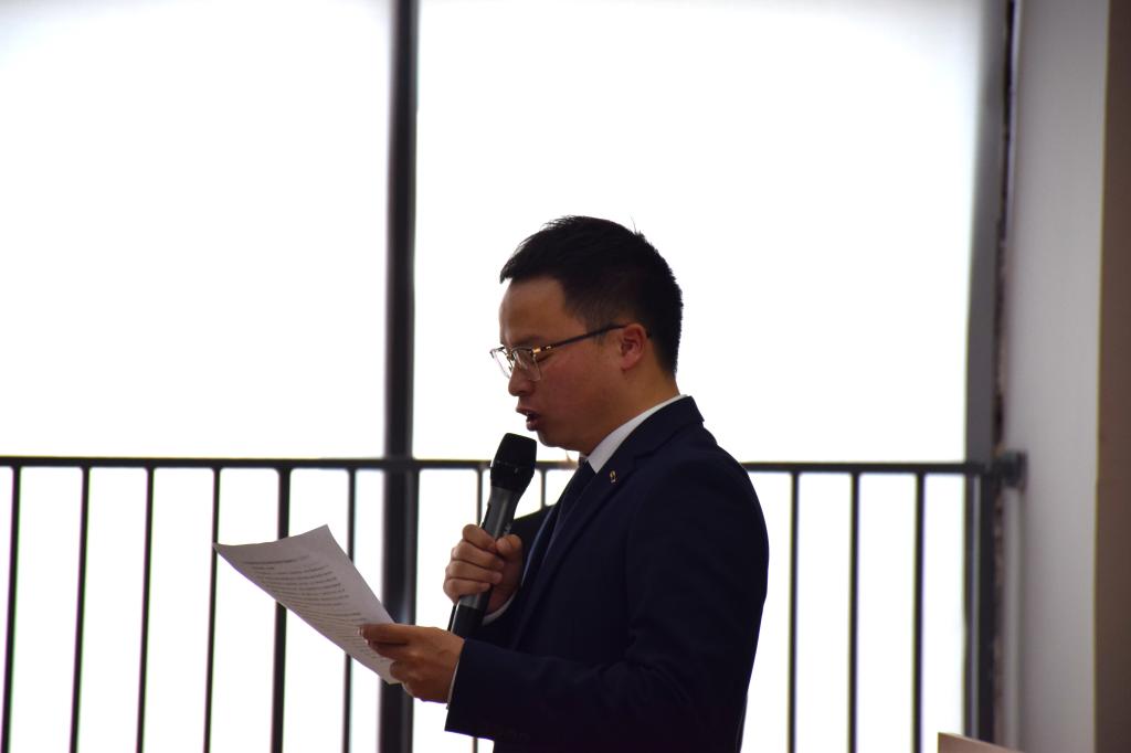 随后,副院长王焱老师发表了大会致辞。王焱老师指出,学代会是学生政治生活的头等大事,更是学校政治生活的重要大事,充分体现我校学生自我教育、自我管理、自我服务的显著特征。他强调,过去学院学生工作在校党委、校团委、校学生会的领导和指导下取得显著成绩,未来的学生干部要坚定信仰,做新时代听党话、跟党走的青年;要勤奋学习,扎实学本领技能,注重自我提升;要踏实开展工作,注重自己在广大同学和学校间的桥梁纽带职责和作用;要注重自我提升,树立榜样,以为同学办实事、办好事、解难事的热情做好学生会工作。最后,王焱老师预祝此次大会取得圆满成功。