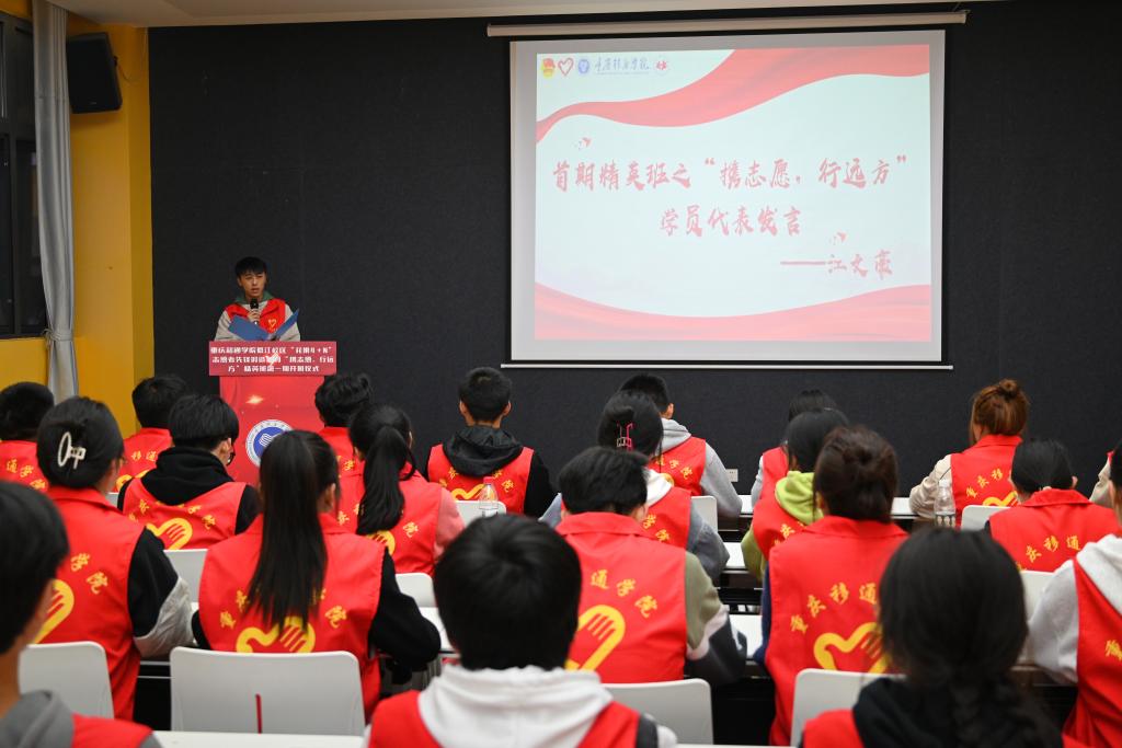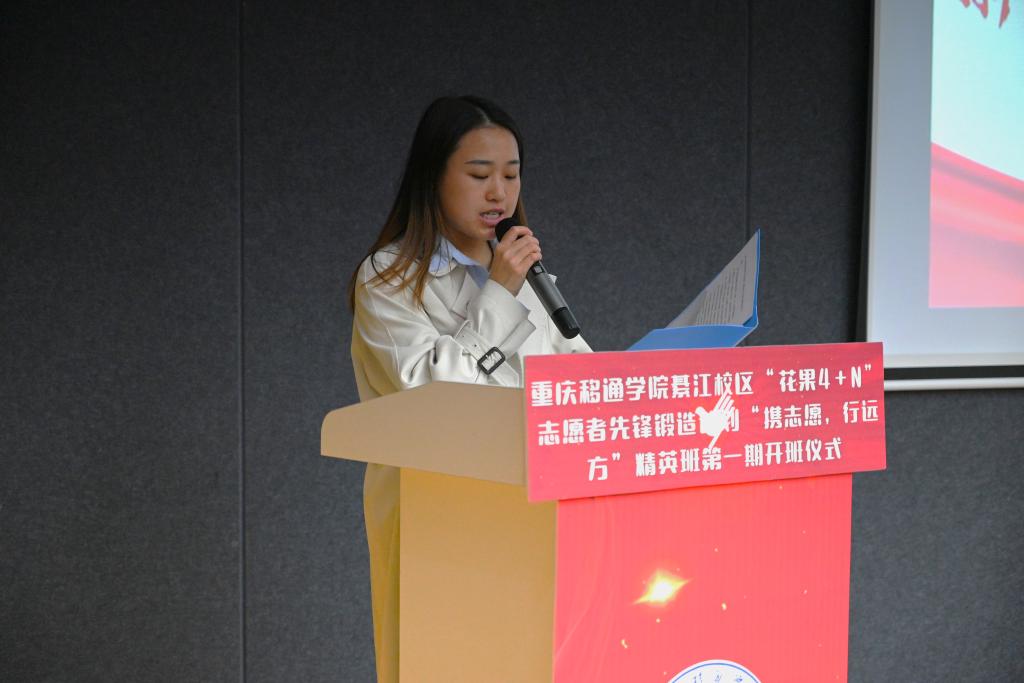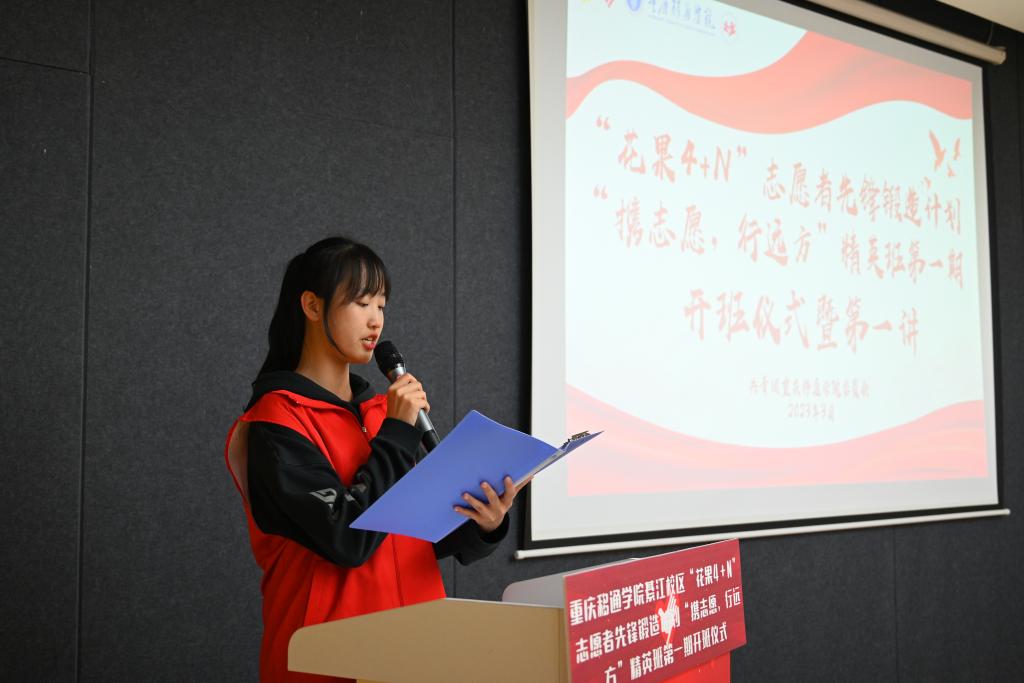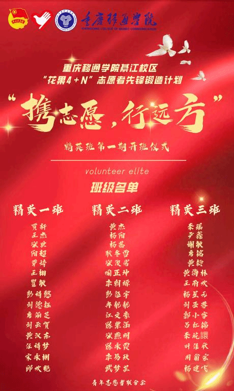为贯彻落实中央文明办、共青团中央等一系列关于志愿服务工作的意见和指示精神,推进志愿服务专业化、制度化、规范化建设,2023年3月15日星期三19:00-20:00,由重庆移通学院綦江校区青年志愿者联合会主办的“花果4+N”志愿者先锋锻造计划精英班开班仪式暨第一讲于瀛溪书院回声报告厅顺利开展。