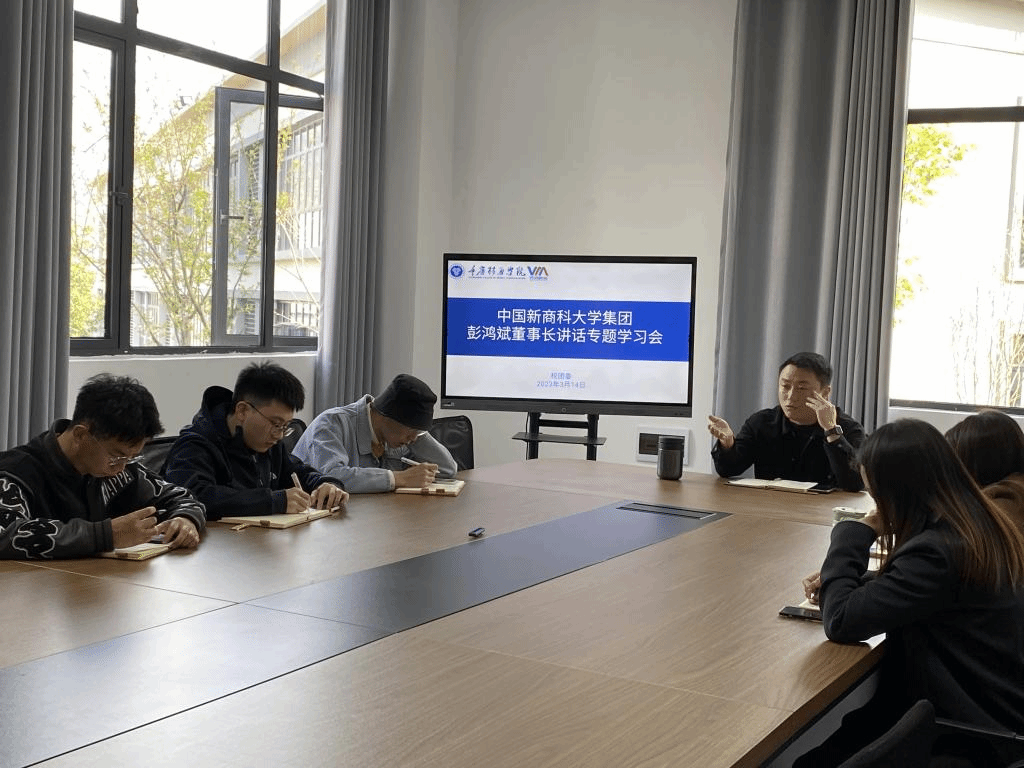 为深入学习集团总裁彭鸿斌先生在校友交流会、特色部门交流会、干部大会和多个专题研讨会上的讲话精神,3月14日下午15:00,校团委于勇者楼101会议室在前期个人学习基础上再集中开展彭总实地考察两校区和綦江校区在建工程时进行的几次讲话精神主题学习会,会前老师们对讲话精神进行了深刻研读,会上根据自身工作内容结合实际情况逐个交流分享心得。