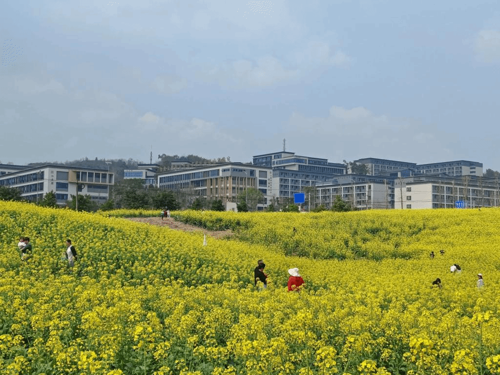 春风如约而至,百花如期而开,移通学院校门对面的百亩良田,在通惠街道办事处及重庆市柏雀林农业开发有限公司的改良下变身为百亩油菜花田,书院部借此契机,迅速开展校企、校地联动,为綦江校区的学子“承包”百亩春田。3月10日,由书院部主办、玉棠书院承办的重庆移通学院綦江校区首届油菜花节,在花田顺利开幕,活动现场吸引了我校学子及众多周边居民积极参与踏春采风、打卡拍照。