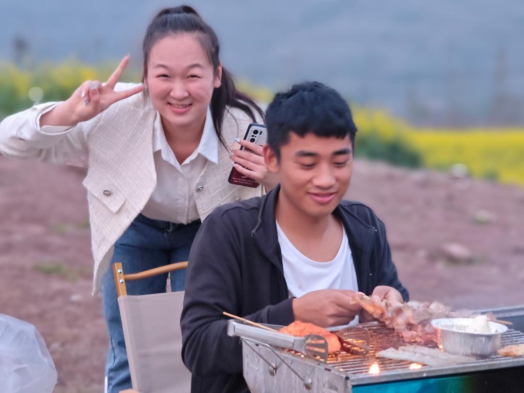 帐篷、烤架、食材、调料,外加当代大学生生活的最高配置——三两好友,在油菜花田中开启一键快乐模式,享受舒适的校外田园风光。蝴蝶环绕在身边,朋友在身边欢笑,躺在帐篷里闻着油菜花香,静静的享受这一刻的快乐。