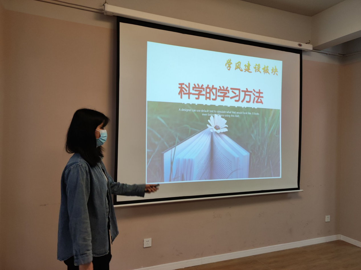 在班级学风建设上,辅导员积极引导班级的同学们树立“学而不知足”的观念,端正同学们的学习态度、激发出学习动力;要求班委认真配合任课教师做好出、缺勤记录,加强考核制度;鼓励同学们展开寝室协作,交流共学建立全面的提醒监督机制制度保障;寓教于乐,共享乐学,开展多种多样特色专业活动;本研互助朋辈助学,加强朋辈间学习交流;学研结合,异科导师对各小组、学生个人进行专门指导,充分发挥朋辈的模范带头作用和榜样示范作用。每一学期,班级都会召开多次学风建设主题的班会,全班同学共坐在一个空间里,立足班级和专业特色,分享学习心得,探讨优良学风建设办法,宣传课堂行为规范,畅谈考试诚信问题,共同制定一份《班级学生学风公约》。