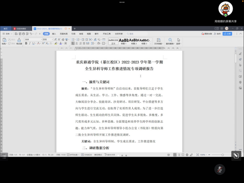 周晓蝶主要汇报了全生异科导师工作情况。她表示上学期首批导师们立足于学生成长需求,从生活、学习、工作、情感等多角度,通过一对一交流、大咖阅读分享会、技能培训、沙龙研讨、项目研发、平台搭建等多方向与学生进行交流互动,也取得了实质性育人成效。随后李俊颖老师汇报了“商科+”交叉融合工作。她举例了上学期主要开展的活动,主要有四方联动举办的“商科+电影+戏影”研讨会以及与数信开展的课程融合交流会,“电影+商科”——记一场关于“电影商业秘密”的思想交锋等活动。计划在新学期开展六次“商科+”交叉融合活动。