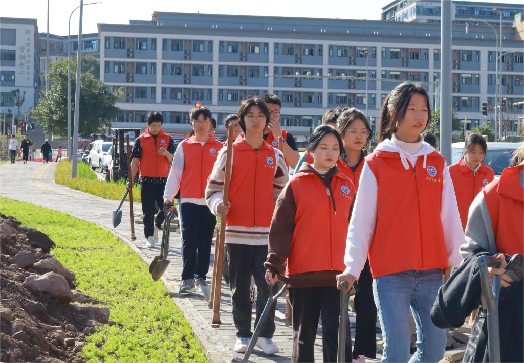 3月13日,正值中国第45个植树节的后一天。志愿者们保持良好生态环境的共同心愿依旧不退,坚持做生态文明理念传播者和践行者的担当不减。志愿者进行了简单宣讲,提醒大家人身安全和纪律注意事项,大家便拿好植树工具整齐出发。阳光透过薄薄的云层,照耀着大地,照得同学们手中的工具反射出星星亮光,就像闪耀着志愿者心中守卫绿色家园的爱心和信心,校园中的绿植新发的嫩芽也被照得透亮。