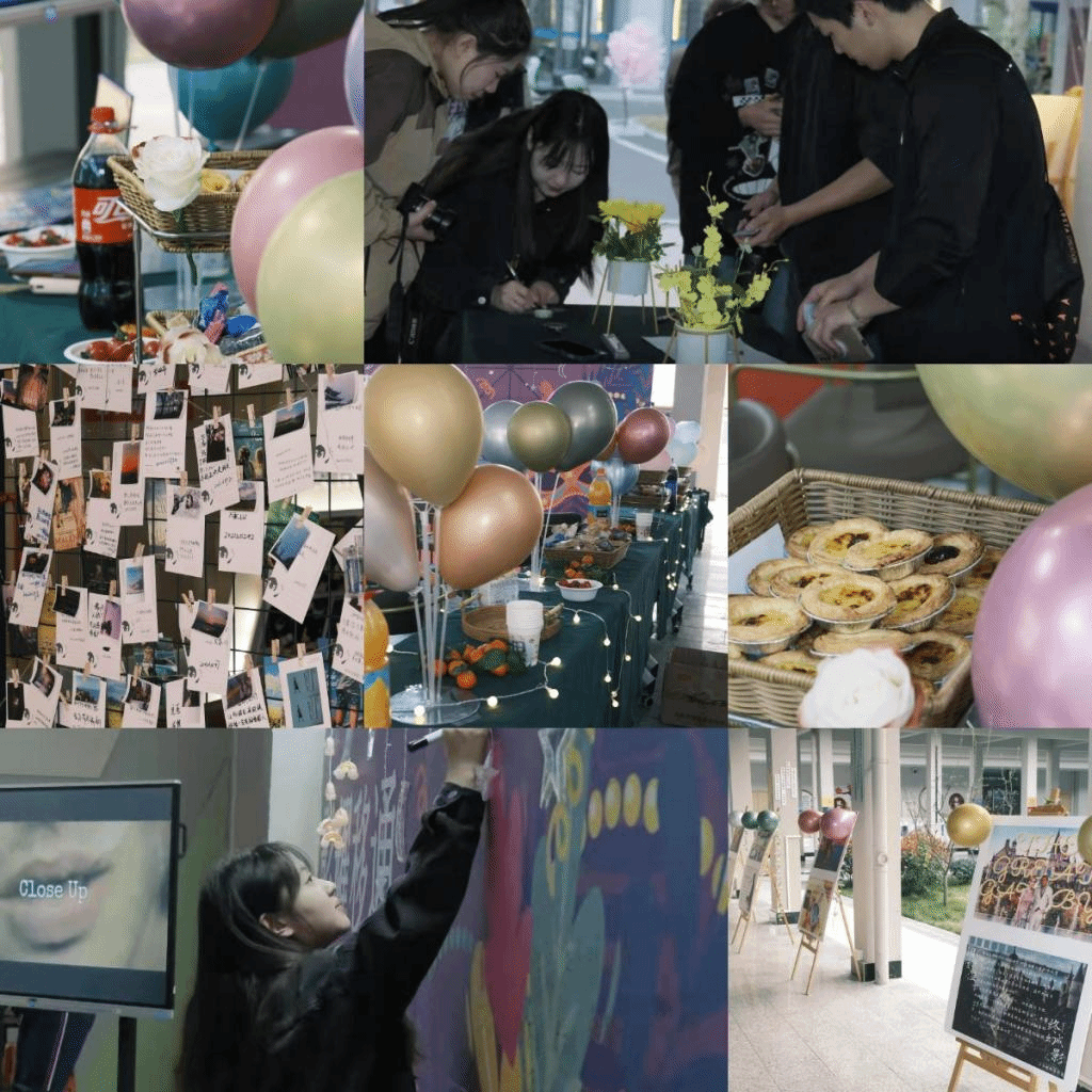 活动伊始,社团干事们早早来到现场布置场地、彩排活动,同时准备了美味的零食甜点和饮料供来参与活动的比赛选手和观众享用。随着参与同学陆陆续续到达现场并在签名墙前留下姓名,气氛被逐渐推向高潮。同学们格外热情,场上不少观众在座位不够的情况下站着参与了这场愉快的party。