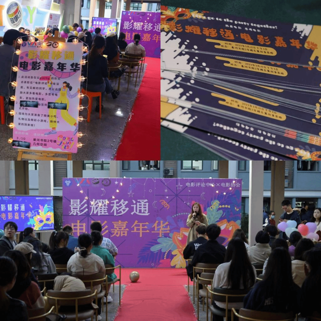 春寒料峭,万物复苏之际,为庆祝第十四届“影耀移通”校园影评大赛的顺利举行,并为全校师生带来更具社团特色的丰富活动,电影评论中心与电影协会于2023年3月10日晚上7点联合了重庆移通学院綦江校区的电影爱好者,在綦河书院几何空间共同举办了第一届“影耀移通 电影嘉年华”活动,一起分享喜悦,共享荣誉。本次活动由来自电影评论中心的谭雪老师统筹负责,幸李寒、张正钰、钟家治、杨剑秋、梁冬梅与刘静蕊6位老师共同指导,电影协会全体干事积极组织并参与。