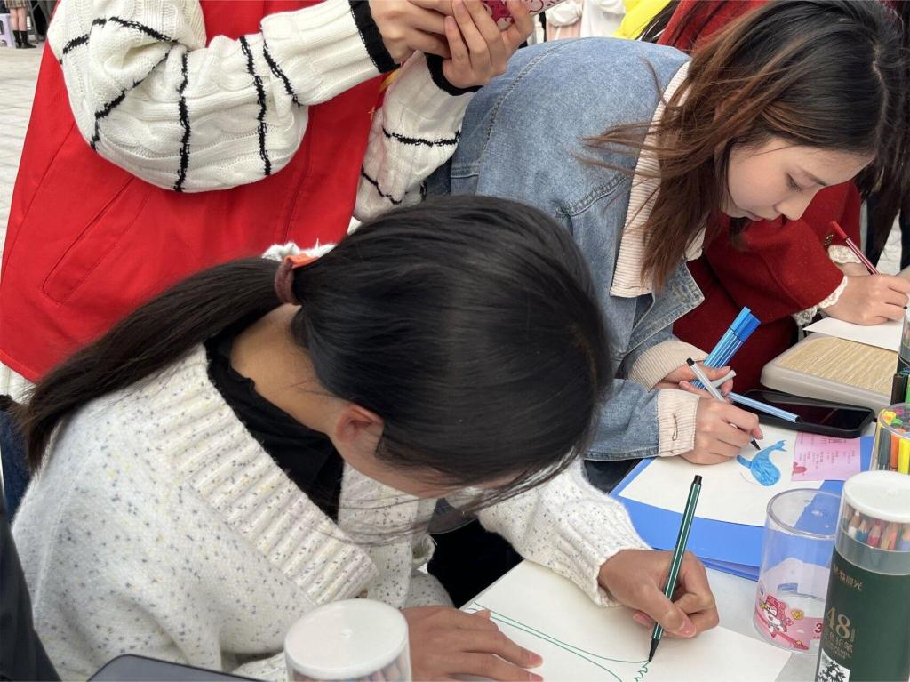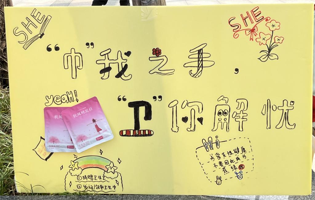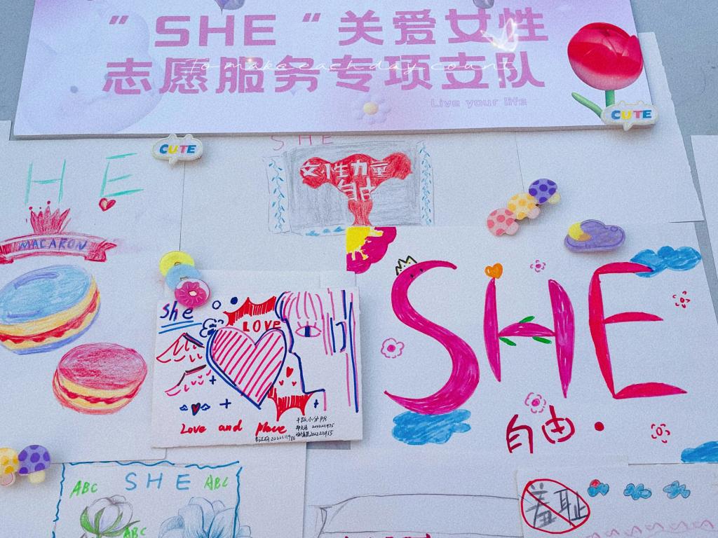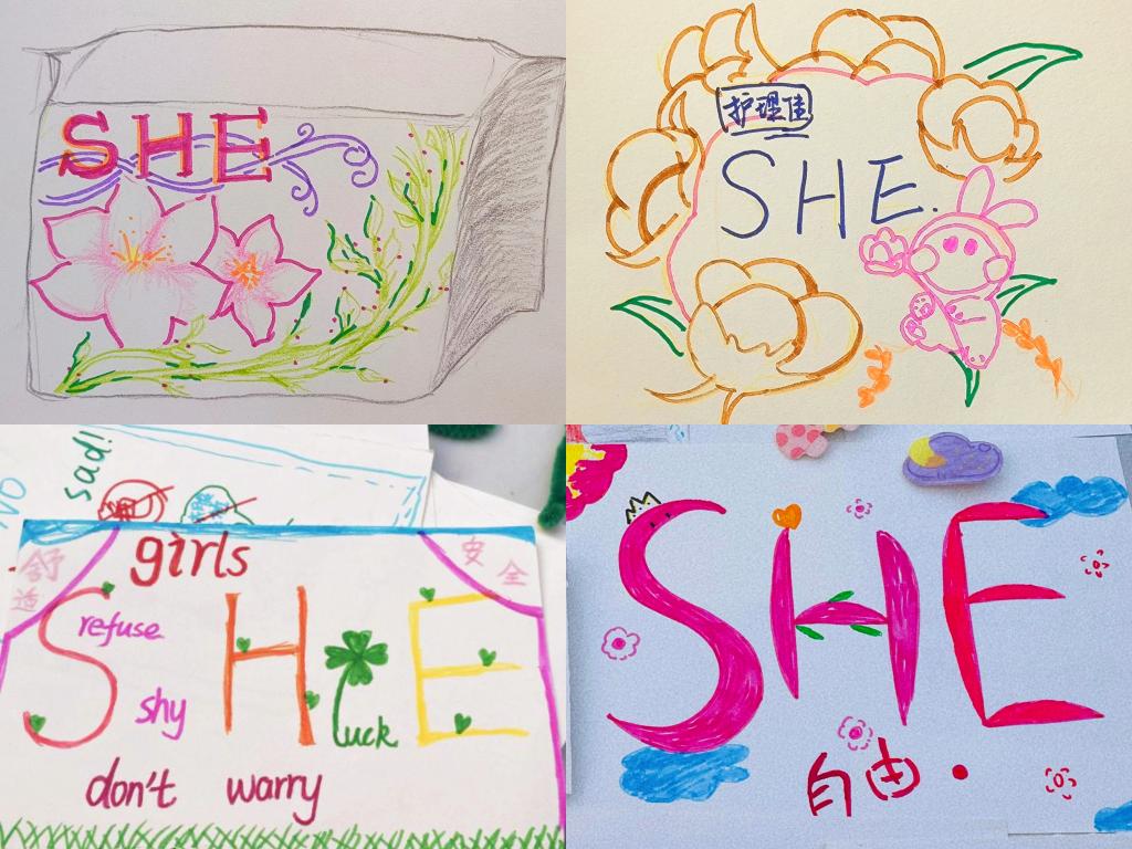 鲜活春意,为她而启,春风如约而至,“巧手慧心”创意DIY活动也于3月5日如火如荼地开展。同学们运用细长的线条、丰富多彩的颜色画出富有创意的卫生巾外包装,画出独属于SHE的独家浪漫。每个作品未必惊艳人心,但一定情深意更浓,她/他们用这种温柔无声的方式,用实际行动来拒绝“卫生巾羞耻”。活动结束后,“SHE”将定制的支队logo贴在优秀作品上,并在3月15日的卫生巾互助活动中,将其粘贴在卫生巾互助盒旁。SHE呼吁全社会拧成一股绳,一起凝聚、传递、壮大“她力量”!
