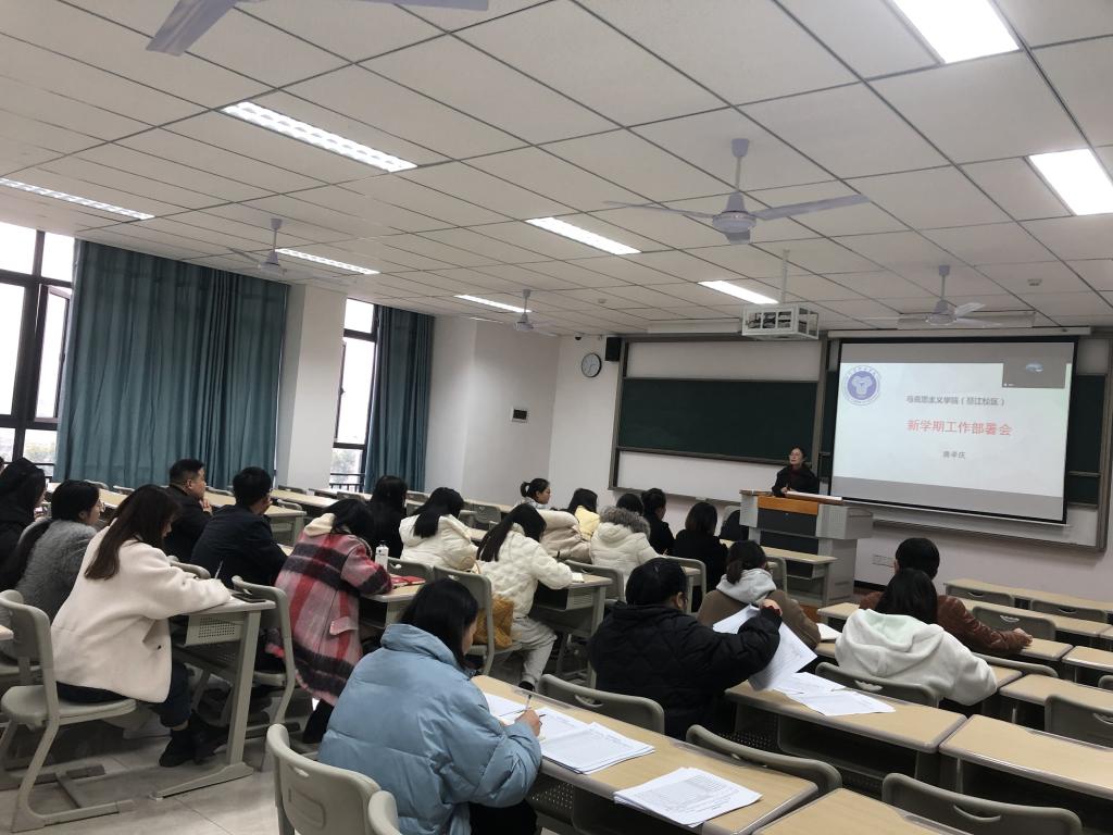 为进一步促进教育教学高质量发展,统筹推进新学期马克思主义基本原理教研室和形势与政策教研室各项工作有序开展,2023年3月1日,马克思主义基本原理教研室和形势与政策教研室全体老师于仁者楼308教室举行新学期工作部署会,会议由唐孝庆老师主持。