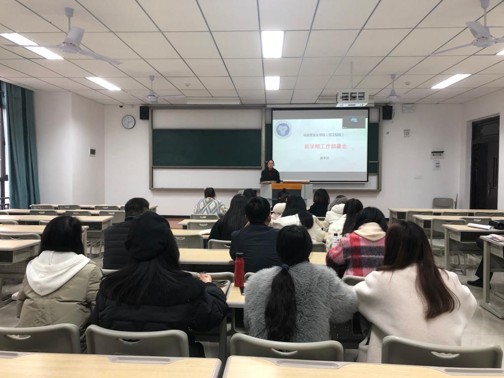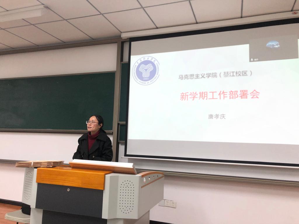 最后,唐老师就教师工作方面的内容也作了以下部署:一是本学期将举办第二届思政教学能手大赛,鼓励所有年轻教师积极参与,尤其是新老师要踊跃报名,在比赛过程中博采众长,积累经验。二是为践行学校建立信息产业商学院的愿景,深入贯彻学校的教育理念,马院将继续信息产业大咖阅读计划,并要求教师深入阅读相关书籍并将所思所得融入日常教学中。三是将每周的教研室备课以及新教师听评课作了详细的规划,并要求各课程组必须认真对待每一次集体备课,重视集体备课,提升教学质量。