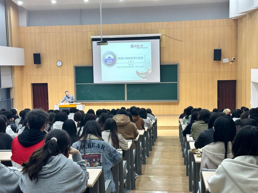 中国是有五千年历史的文明古国,他曾称霸世界、灿烂辉煌,亦曾闭门自守、墨守成规。19世纪,欧洲文明迅速发展,可谓“山中方一,世已千年”!现在的我们,正在为了中华民族的复兴而努力、奋斗。2023年3月8日晚上19:00,我校邀请武汉大学李工真教授做客“名师课堂”,在玉棠书院阶梯教室开展了《欧洲文明的转型与发展》系列课程第一讲,带师生走进了欧洲文明转型与发展的历程。