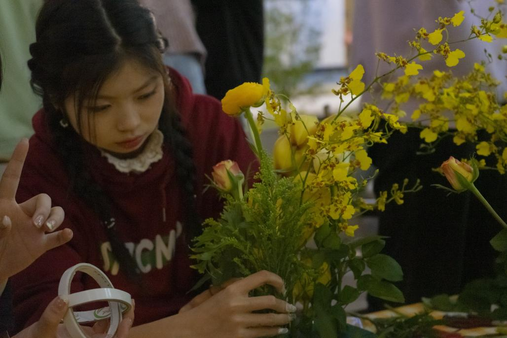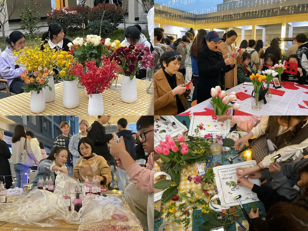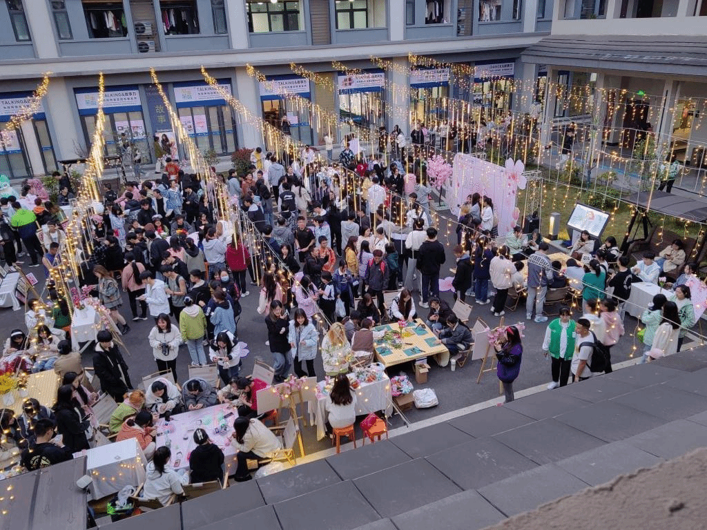 本次活动以“花”为主要元素,设置非遗剪纸体验、国潮动漫、校园手工等7个种类摊位,上千名学子齐聚现场,以樱花之名共享浪漫且自由的春天。