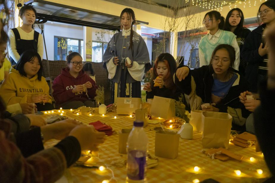 一束花的仪式感永远不会过时,手工DIY的郁金香、樱花钩织摊位面前围满的人,收获的是成功GET创作品的满满成就感。春天到来,樱花初绽,在国潮动漫的记忆中,樱花的季节便是浪漫唯美,二次元的世界也充满了爱与自由。动漫社同学们的COS更使得本集市增添一丝活泼。在春天一起去吃限定樱花酥,美食让人治愈,在集市中空气也增添了一份香甜,同学们精心制作的樱花酥,无论品相还是味道都为上佳,也为同学们带来快乐与美好。在杂货铺摊位里,同学们用自己的双手创造一个又一个美丽的事物,“保持对生活的热忱与爱,每一天都过得热气腾腾”!