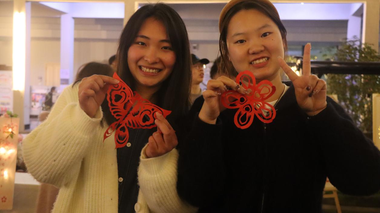 民间剪纸作为一种传统艺术形式,在早期的产生和应用中,承载着无数人们最真诚的憧憬,他们用具象或意象的表现形式寄情于剪纸之上。在“樱花集市”上,特别邀请到綦江剪纸非遗技艺传承人亲临现场,一把剪刀、一双巧手,赋予这张普通的宣纸活灵活现的生命力,同学们无一不感叹老师们技艺的高超,也纷纷动手将春天美好的事物预存下来,相信美丽的事物终将历久弥香,栩栩如生。