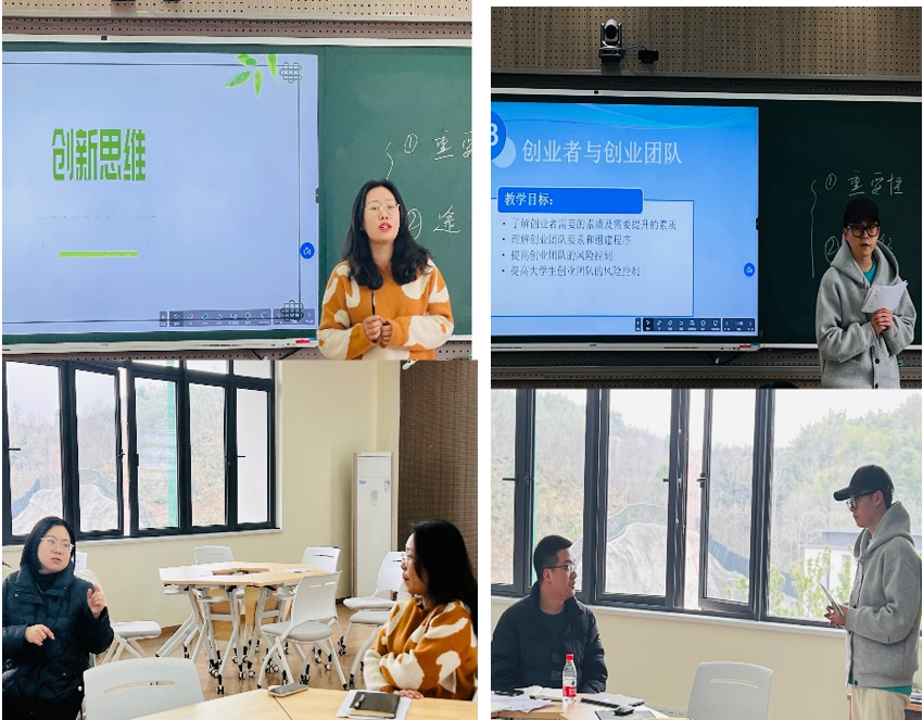 下午14:00,15位创业课程老师通过课件分享了他们关于创业课程的教学方式。老师们在试讲中有结合到学生的兴趣进行分析,如何更好地设计一堂创业课,调动学生上课的积极性;杨老师特别强调通过创业课程要注重培养学生的创新思维,营造愉悦的课堂氛围有利于学生更好地进行学习。