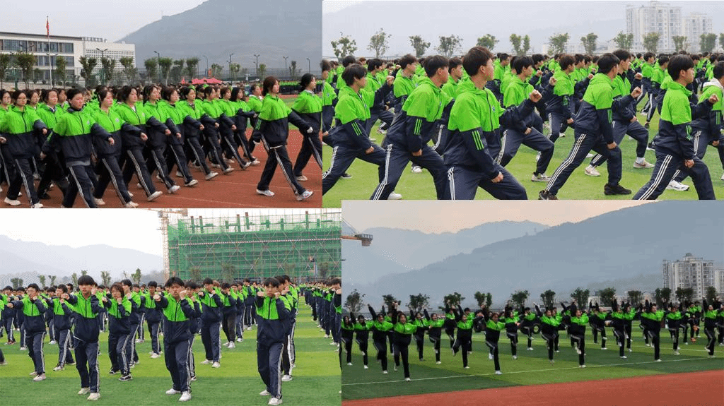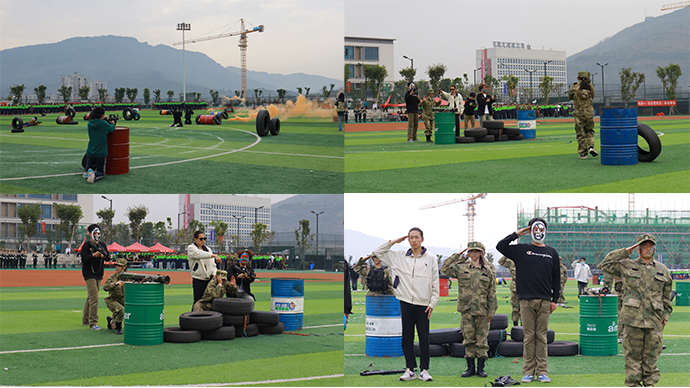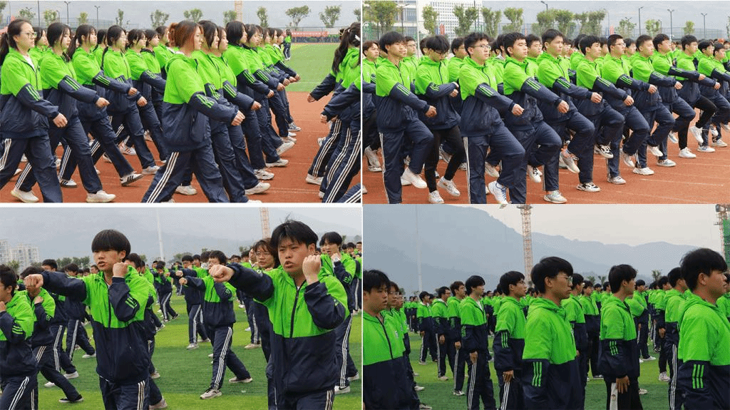 愿做利刃,整装待发。军事演练队伍,也让同学们军训期间的各项训练成果得到了充分的发挥和表现的机会。军体拳、手语操……在一令一动,一令三动的命令之下,在一句句军歌唱响之时,同学们正步整齐划一,每一步都铿锵有力,掷地有声。握拳,抱腹,摆臂,踏步,这些动作听起来简单,但它考验的是个人身体的协调,团队配合的力量,所以说“团结就是力量”这句话一点也不错。