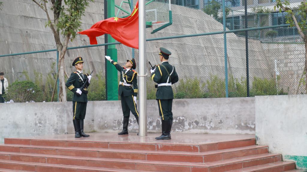 “五星红旗熠熠生辉,我的信仰万丈光芒。”大数据的学子们眼神坚毅,目送校国旗护卫队成员护送着国旗踏着矫健的步伐走到旗台,伴随着庄严的国歌,五星红旗冉冉升起。他们终于迎来了检验自己成果的那一刻,终于能够用积极进取的状态和斗志昂扬的精神来迎接学校和自己的检阅。