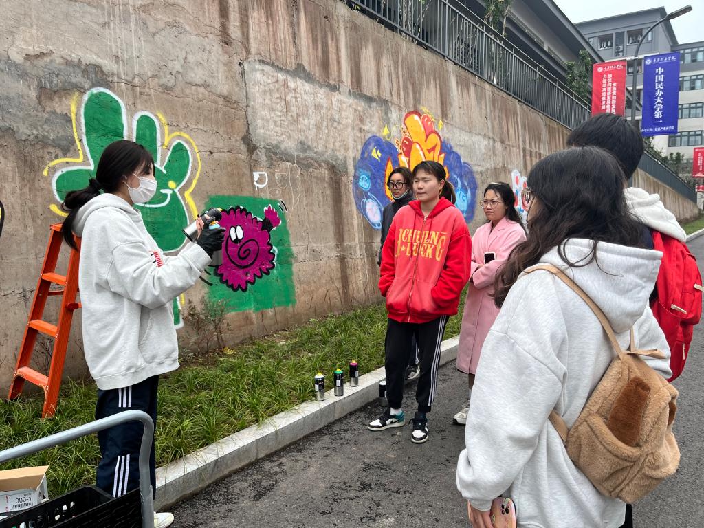 涂鸦是展现青春个性的名片。在涂鸦活动开展之前,横山书院学生干部向同学们介绍了如何使用喷漆、提供了极具创意的涂鸦技巧以及指导和帮助,提高同学们的艺术审美,让同学们的作品更加精美、更有内涵。参与此次活动的同学们也认真学习并热情满满的投入进了涂鸦创作当中。