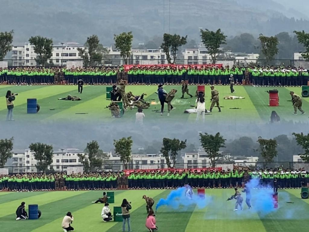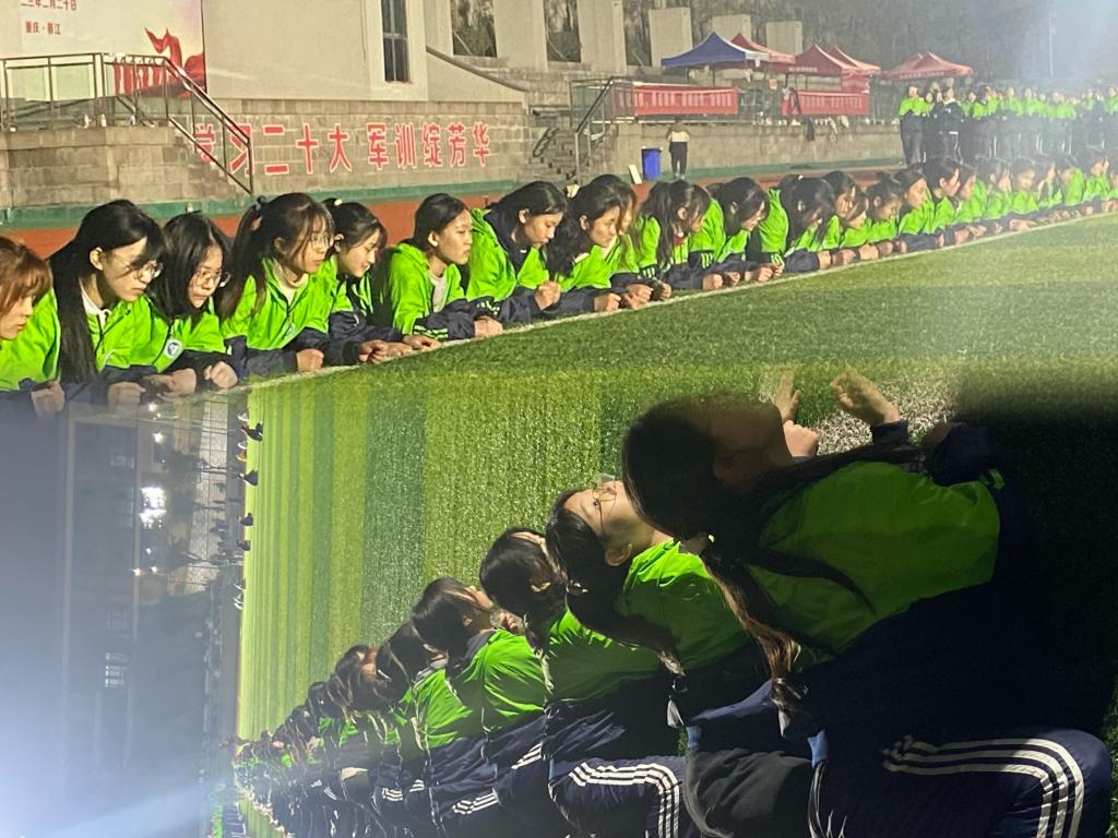 大学军训完全不一样,同样是站军姿,但反而是各个项目中最轻松的一项。体能、匍匐前进、包扎、军体拳……每一项都在仿佛是在挑战身体的极限。不是所有人都坚持的下来,这两天都有人晕倒,但是,坚持到晕倒,不也是一种毅力的体现吗?幼苗不经风霜洗礼,怎能成就参天大树?雏鹰不经狂风暴雨,怎能翔翱苍天?年少的我们亦如此,不经历艰苦磨练,又怎能成为对国家有用的人。白驹过隙,时光像一条潺潺的小河,仿佛一眨眼的功夫,14天划过,因为生病在病号连看到同学们在下面练习彩排,内心非常羡慕,不能全程坚持,可能就是大学里的第一个遗憾吧。