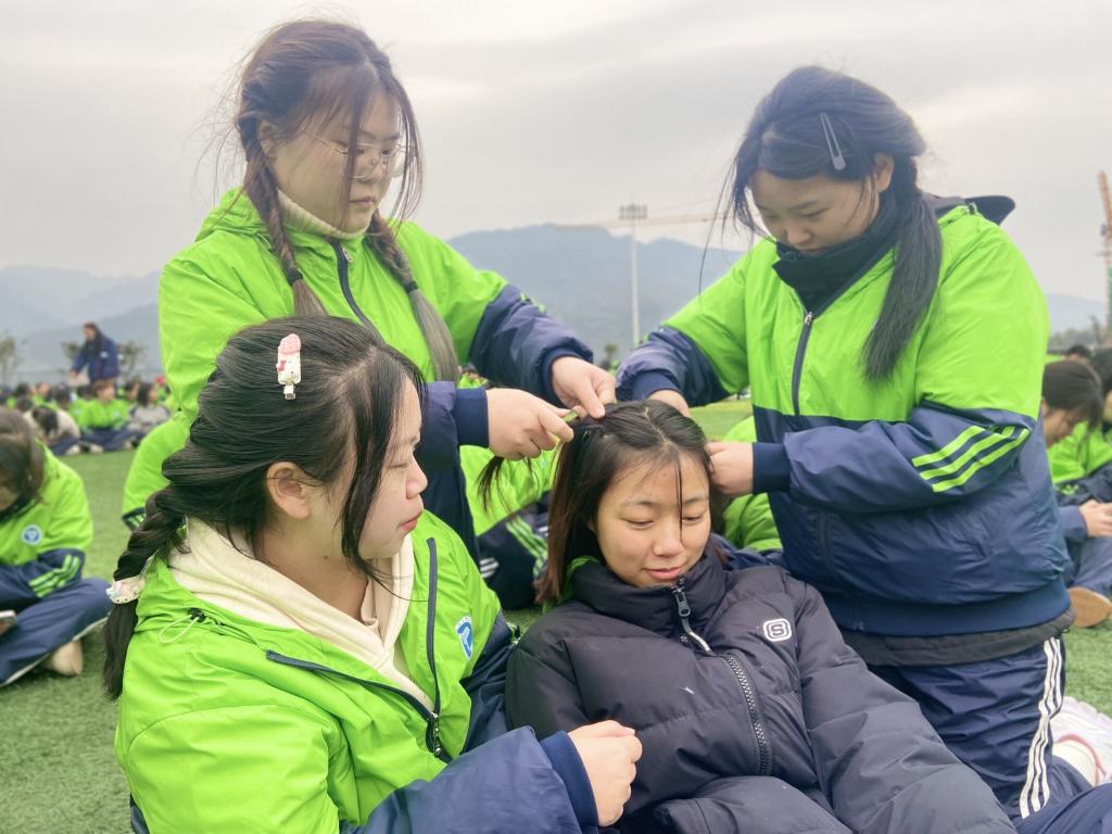 青春飞扬,激情向上,志在十九,共创辉煌。响亮的口号喊出了19连的朝气与活力,为了方便训练,她们统一扎着小辫,形成连队默契,她们随时关注身边同学的状态,互帮互助、齐心协力,在每一个动作、每一句口号一遍又一遍磨合中,戏娃与健管er的友谊也在不断增进。
