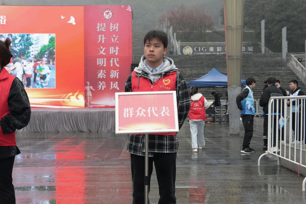 万物有诗,文明有你。近年来,越来越多的大型赛会活动在重庆举办,我校作为大型赛事活动的主要招募高校之一,曾组织志愿者参与2022年北京奥运会、中国国际智能产业博览会、中国西部国际投资贸易洽谈会、中华龙舟大赛。綦江区正着力建立全国城市,为在宣讲中引导,加强信念教育,綦江区团委组织开展2023年綦江区“学雷锋月”“重庆文明行为促进月”启动仪式暨创建全国文明城区攻坚誓师大会。重庆移通学院积极响应号召,40余名志愿者于3月3日前往綦江区营盘山广场助力綦江区誓师大会,保障大会台前幕后相关工作的有序进行,为大会的有序进行打下坚实保障。