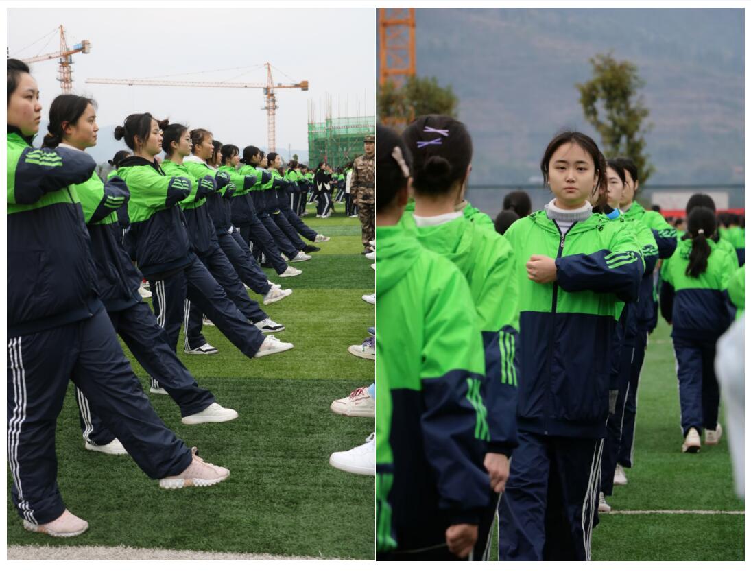 军训时每一滴曾经流下的汗水都积攒成了阳光,见证了那些骄傲的成长。无比坚毅的眼神终将化为黛色的翅膀,载着不移的信念尽情翱翔。从太阳升起,到夜幕来临,操场上的大数据学子们都在挑战自我,在一步一步锻炼中,磨炼自己的意志,展现青春风貌。“两脚尖分开约六十度,两臂自然下垂贴紧裤缝线。”学子们一直铭记军训要领,坚持着做好每个军训动作,勇于突破自我,挑战自己的极限。