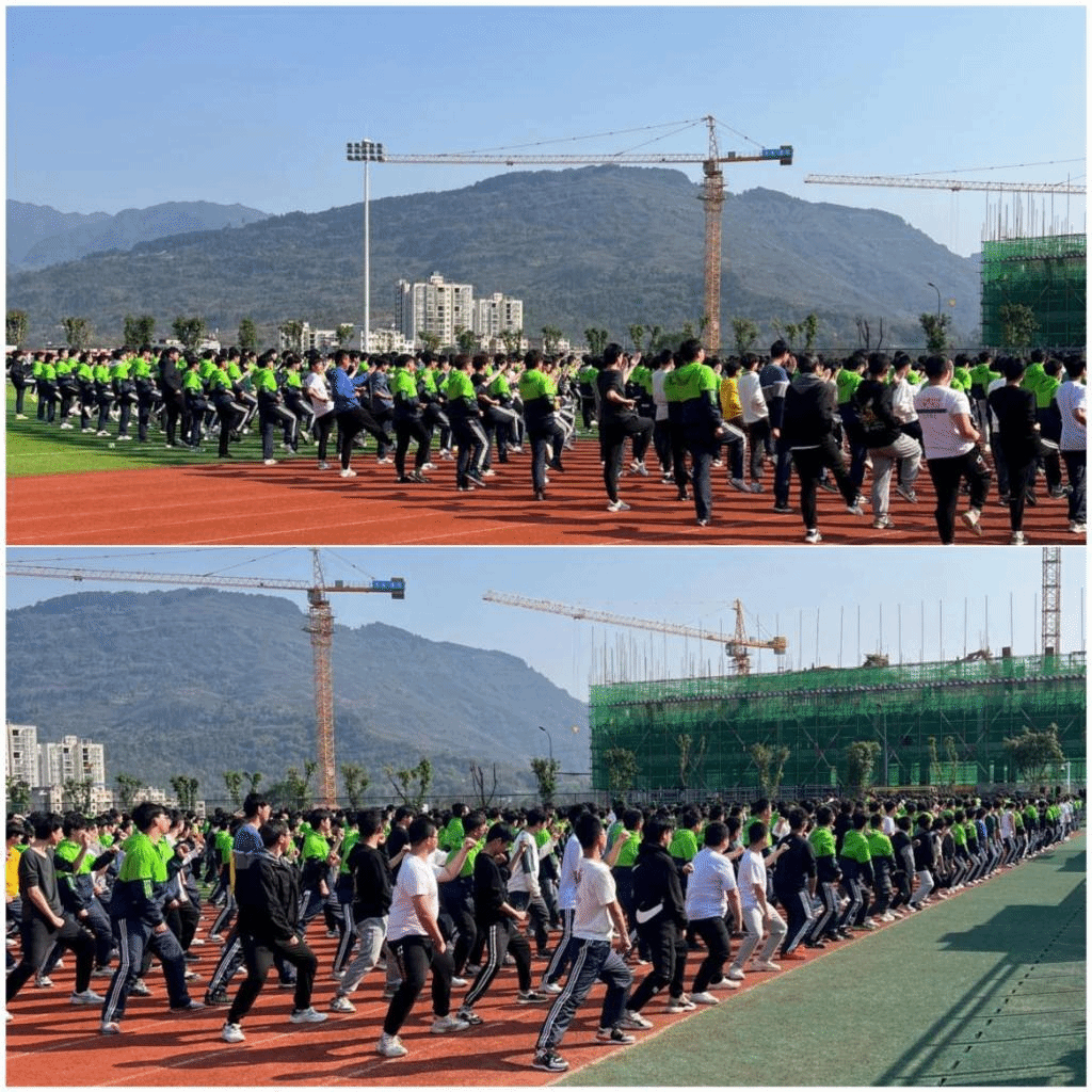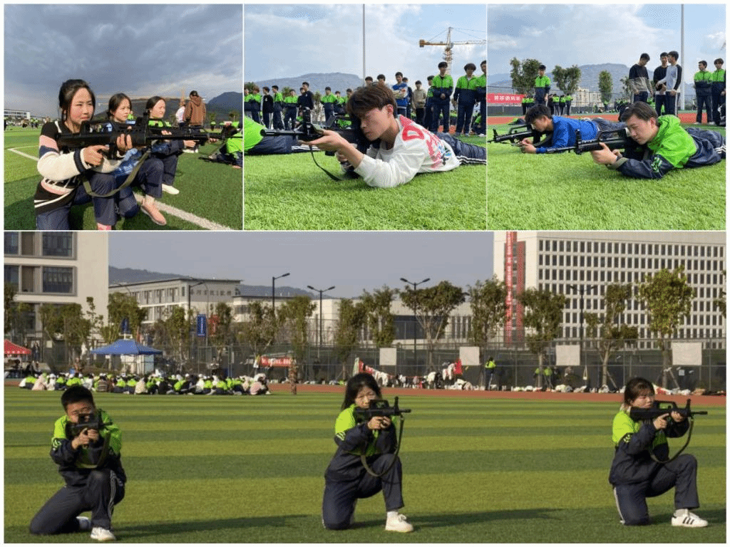 大数据与计算机科学学院 王银娟老师:率先步入眼帘的是擒敌拳方阵,同学们双目紧盯前方,双手打开成格斗姿势,随着教官的一声令下,同学们齐声呐喊到:“打!”贝联珠贯的步伐和干净利落的拳法让整个队伍看起来十分震撼;在主席台的正中间,女生们整齐的端坐在操场上,跟随着音乐的律动一步一步的学习手语操,给操场增加了几分“柔情”;再向右边望去,学习军体拳的同学们动作一气呵成,出拳速度风驰电掣,每一动的“杀”声整齐划一,让人肃然起敬;跑道上点缀着的是正在热身的特种训练队伍,在每次开训前,他们都要进行热身运动,通过八公里的跑步,为接下来的持枪战术动作做好身体防护。军训第七天,平日缺乏锻炼、轻松肆意的学生们大部分都难以承受增量的强度训练,不少同学因为身体不适中途暂停训练,前往学院大本营稍做休息,但更多的是坚持带病上“阵”的同学、教官和指导员,是始终奔赴在操场上的每一个角落的身影。愿同学们在之后的军训中能够逐渐适应训练强度,只有坚持才会战胜一切,战胜自己!