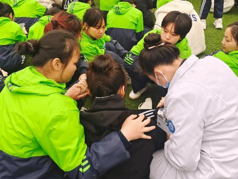 三营十八连的杨同学在站军姿时因为身体虚弱、体力不支,出现全身抽搐、身体僵直、呼吸不畅等症状之后突然晕厥,周围的同学眼疾手快地扶住她,并立即向指导员汇报情况。随后,指导员带着医务人员快速赶到现场进行输氧抢救,在初步诊治后,杨同学转醒,但身体无力,仍无法自由活动。此时,九营五十一连的达同学勇于担当,充分发挥同学之间团结友爱、互帮互助的优良作风,主动帮助杨同学返回“大本营”进行下一步的输氧治疗,在一段时间的休息下,杨同学情况得以舒缓,达同学迅速归队,未作停留。