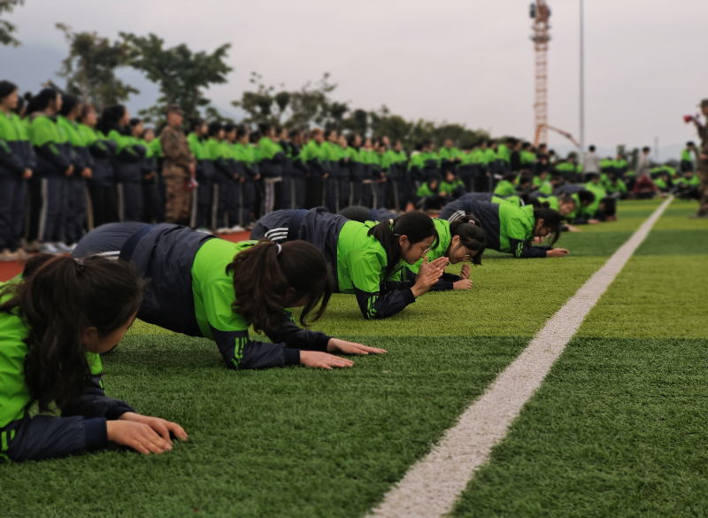 逐渐增强的训练程度让身体素质较差的同学感到了越来越强的负重感,较长时间的军姿站立让动作不规范的部分同学出现头晕目眩、脸色发白等症状,在前往医疗服务点经过短暂的休息后,同学们的身体状态恢复正常,咬咬牙坚持不放弃,又主动申请返回连队继续训练。