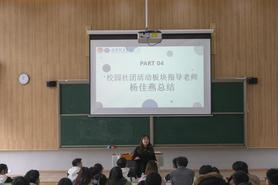 为能够顺利进行新学期社团活动的开展,解决社团工作难题,总结活动经验与方法,完善与更新社团活动开展的管理制度,从而使得社团在新学期迈向新的阶梯,并能够为全校师生带来更具社团特色的、丰富的、多元化的社团活动,学生社团管理中心与2月23日中午12:30于横山书院阶梯教室开展2022-2023学年学生社团新学期动员大会暨二月安全主题例会。本次例会由校园社团活动板块指导老师杨佳燕老师、学生社团管理中心干部以及45个学生社团的负责人参与。