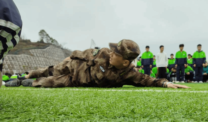二营十二连 彭诗涵同学:22号一早,在热身锻炼中同学们迎来身体上的酸痛,接着教官让我们进行匍匐前进。在教官一次次的示范下,我们一次次地尝试着,绿色的军训服与绿色的草坪融为了一体。考核时,我们拼尽全力地爬动,任由膝盖和手肘在草坪上摩擦,同学们的辛苦没有白费,最后我们用努力换来了满意的欢笑。