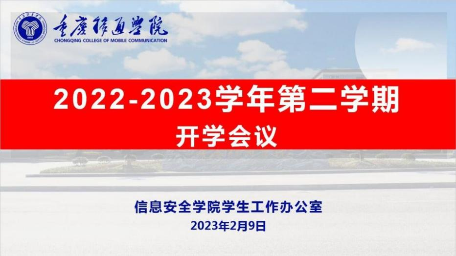 白雪曾落万物肩头,再回首,微风徐来时,应是嫩芽新,满绿意。横越整个冬天的寒假时光在雪融炮响里,悄然过去了。为迎接新学期,统筹规划、高效开展工作,2023年2月9日,信息安全学院学生工作办公室在线上开展开学会议。会议由办公室主任邹健老师主持,辅导员王辅崇、袁君、车秦艳、谭倩、郭秋思、郭自强、温朝一老师共同参与。