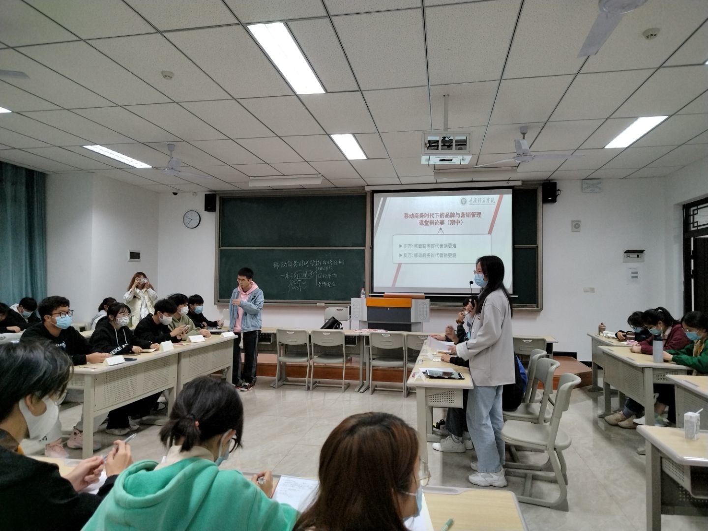 《移动商务时代的品牌与营销管理》课程团队老师范保珠表示,提升学生课堂参与度是新商科课程适应非商科学生的重要考量因素。艾鑫老师则认为,提高同学们批判思维、语言表达、语言组织、逻辑思维能力是翻转课堂的重要意义之一;龚玲老师认为,学生主动参与、师生互动增加更有利于非商科学生理解商科逻辑。李梅老师则表示, 要加深非商科学生对于课堂知识的了解需要学生多一些批判性思考。