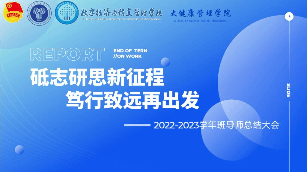时光荏苒,班导师工作进入了首尾阶段。为总结2022-2023学年班导师工作情况,汇报工作成果,分享工作经验,特于2022年12月21日在线上召开“砥志研思新征程 笃行致远再出发”——数字经济与信息管理学院&大健康管理学院2022-2023学年班导师完结述职大会。出席本次会议的嘉宾有数字经济与信息管理学院兼大健康管理学院学工副院长任瑞娟老师、淬炼·国际商学院兼数字经济与信息管理学院兼大健康管理学院学工办主任尹金维老师、数字经济与管理学院和大健康管理学院辅导员任超群老师、韩玉老师、王颖老师以及张焕忠老师。