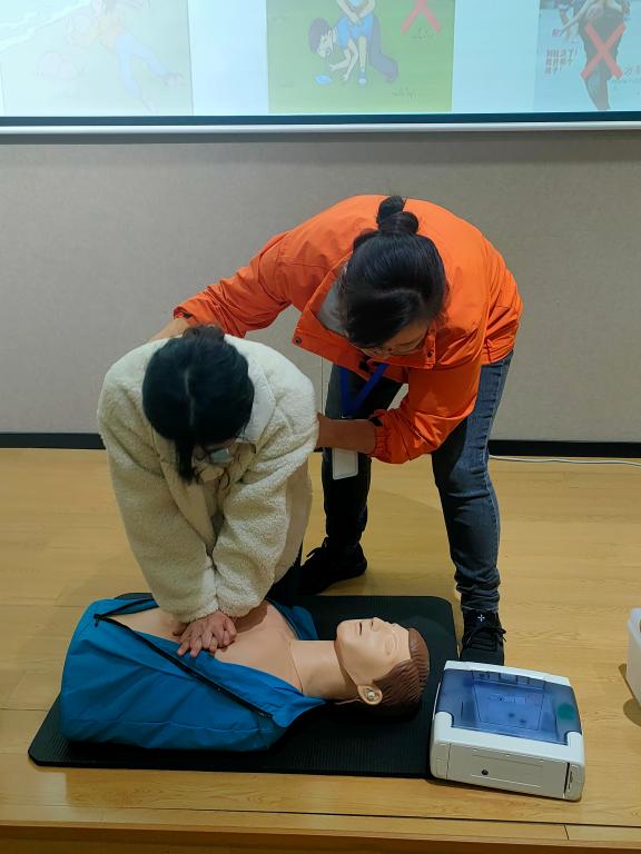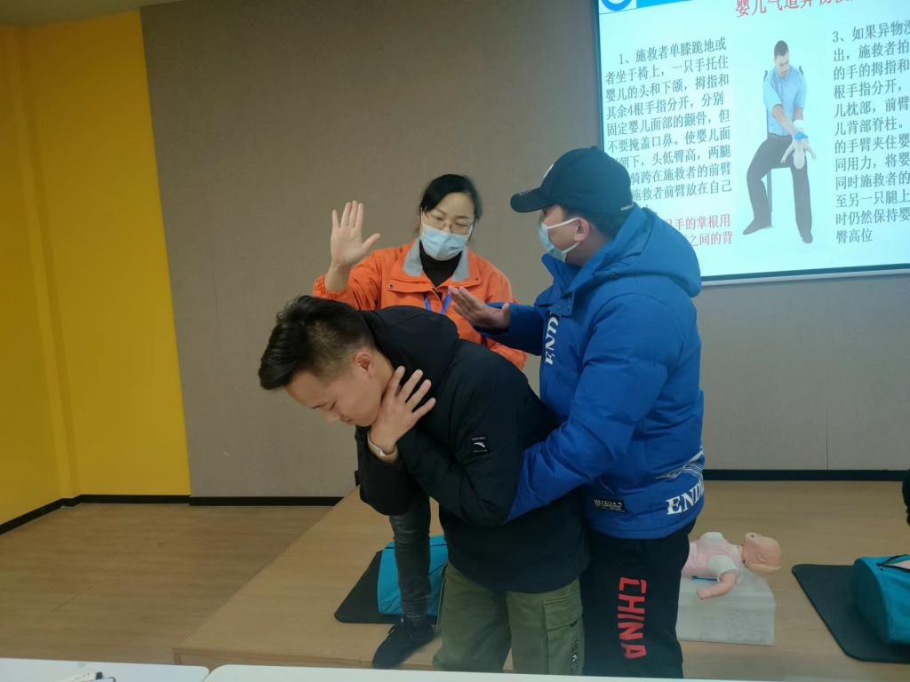 第一部分,理论学习。培训会上,培训专家用数据佐证急救知识对降低意外死亡率的有效性,重点强调了学习心肺复苏术的重要性,讲述了如何判断救助者是否属于需要心肺复苏患者,包括意识、呼吸、心跳的判断,然后讲述了心肺复苏术分为两个部分:胸外心脏按压、人工呼吸,具体讲解了救助过程中需要注意的问题和经常出现的错误,最后教给大家判断心脏复苏有效的指征。除此之外,将其他三大急救术和内科、外科、急症处理方式做了详细讲解,为后续实操铺垫。
