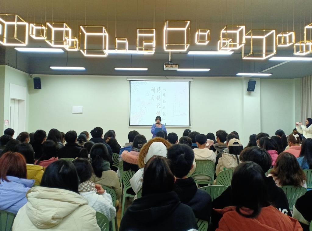 为营造书院共建、共育、共享的浓厚氛围,弘扬以“通书达礼”为家风家训的书院文化,横山书院于12月7日在知物多功能室开展“横山青年”礼仪培训——传统服饰穿戴暨礼仪培训学期总结。活动通过相关视频及PPT讲解、现场互动向大家讲述传统礼仪的要点,通过一次次传递正确礼仪知识来潜移默化影响同学们的思维模式,逐步规范、塑造同学们的行为举止。